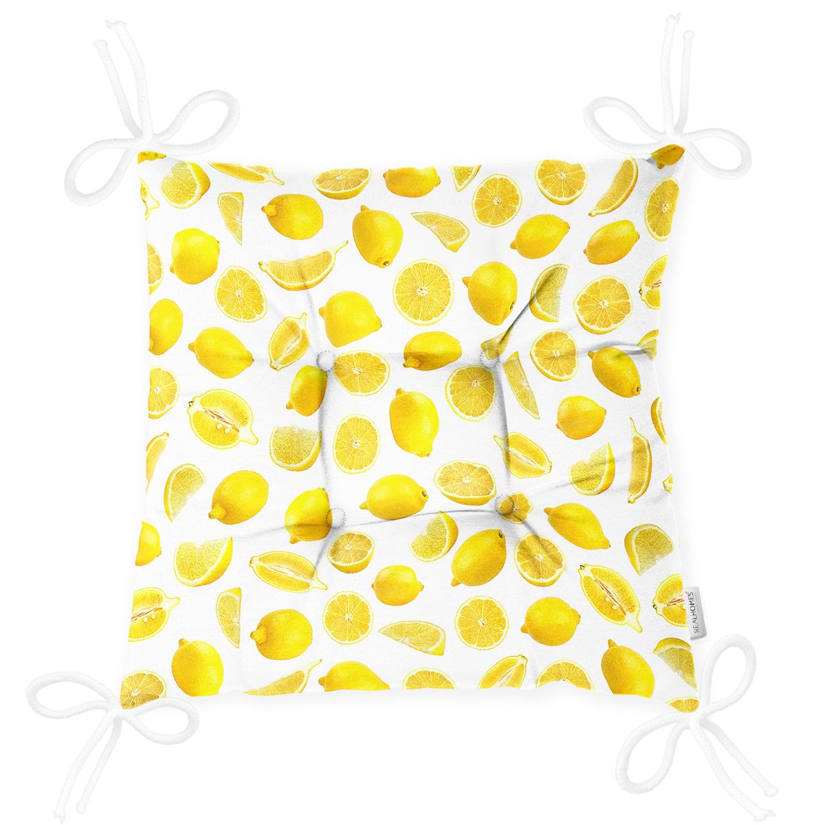 Limon Desenli 3D Dijital Baskılı Dekoratif Pofuduk Sandalye Minderi Realhomes