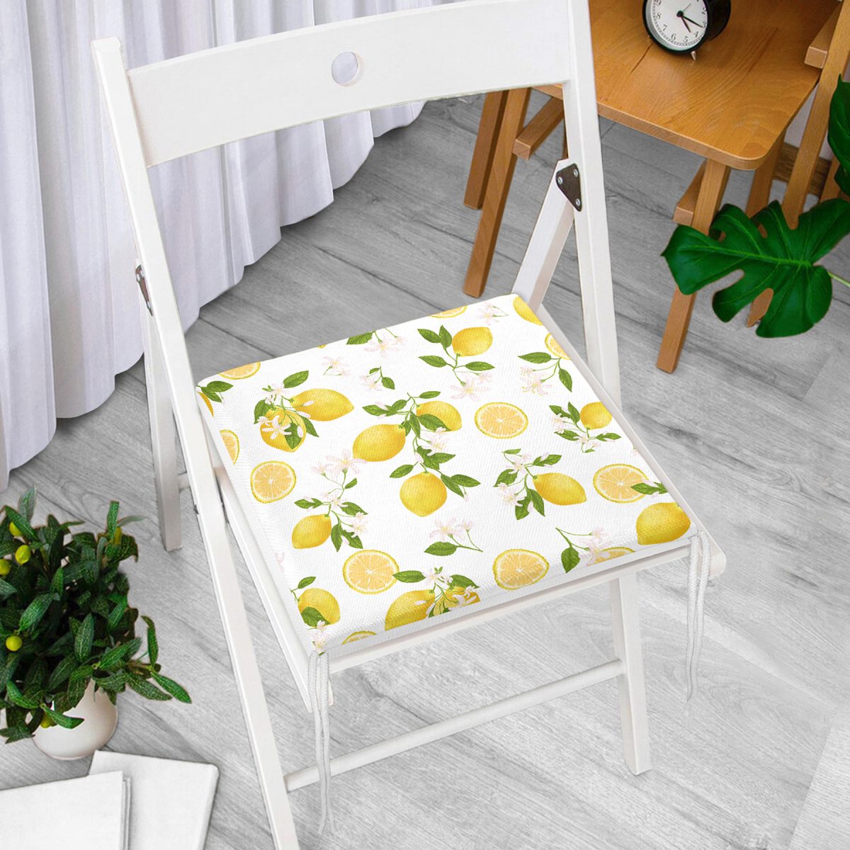 Limon Desenli İlkbahar Renkleri Dijital Baksılı Fermuarlı Sandalye Minderi
