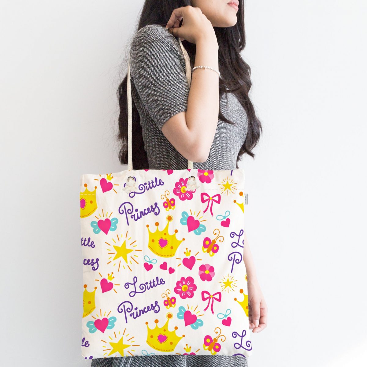 Little Princess Dijital Baskılı Fermuarlı Modern Kumaş Çanta
