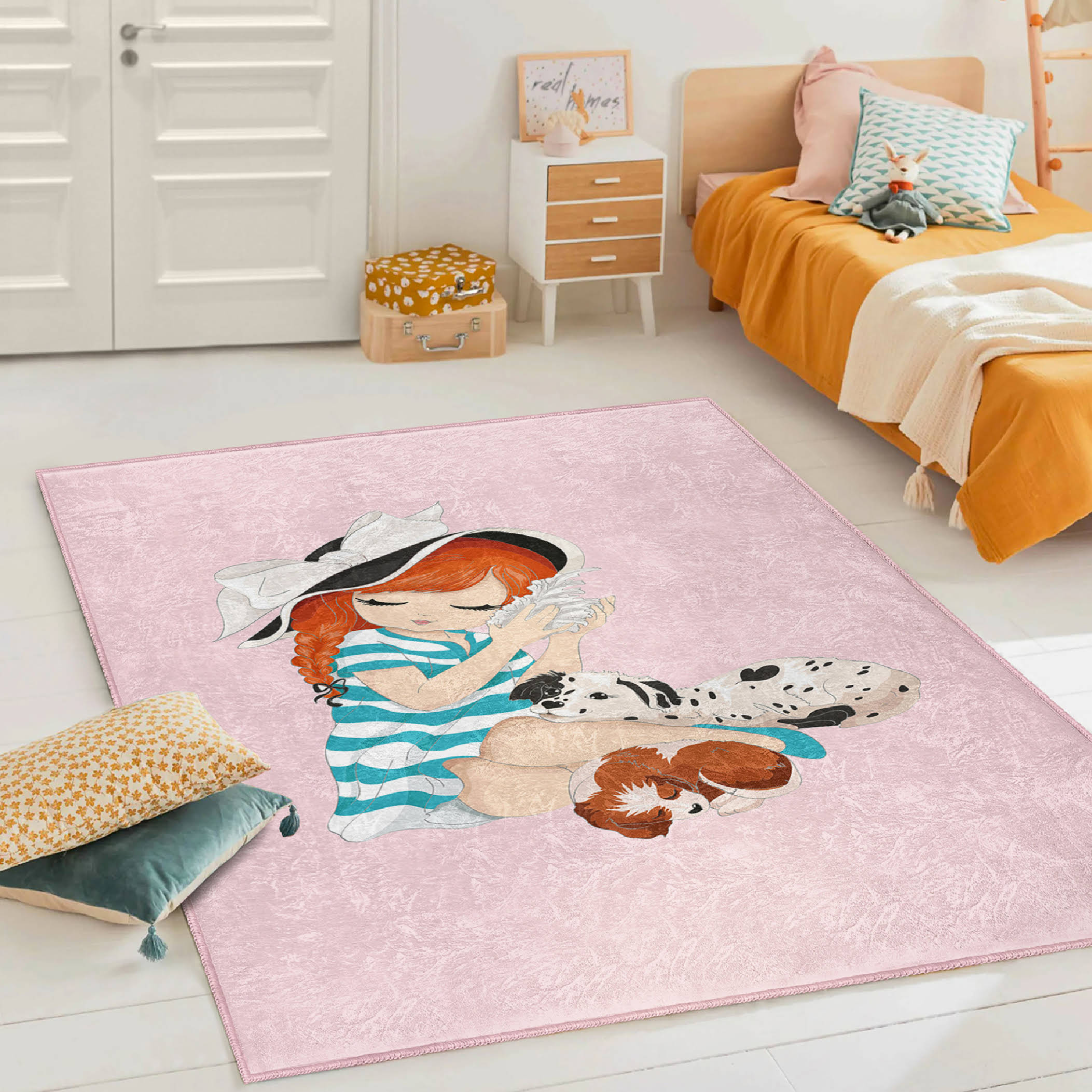 Fashion Girl Çocuk & Genç Odası Makinede Yıkanabilir Kaymaz Tabanlı Yuvarlak Çocuk Halısı