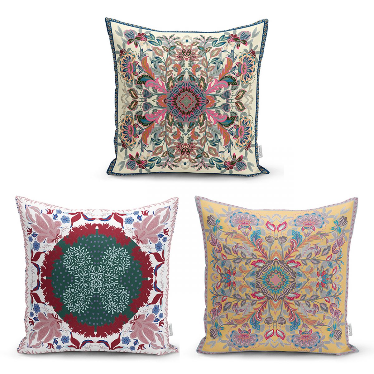 Mandala Çiçek Motifli Modern 3'Lü Kırlent Kılıf Seti Realhomes