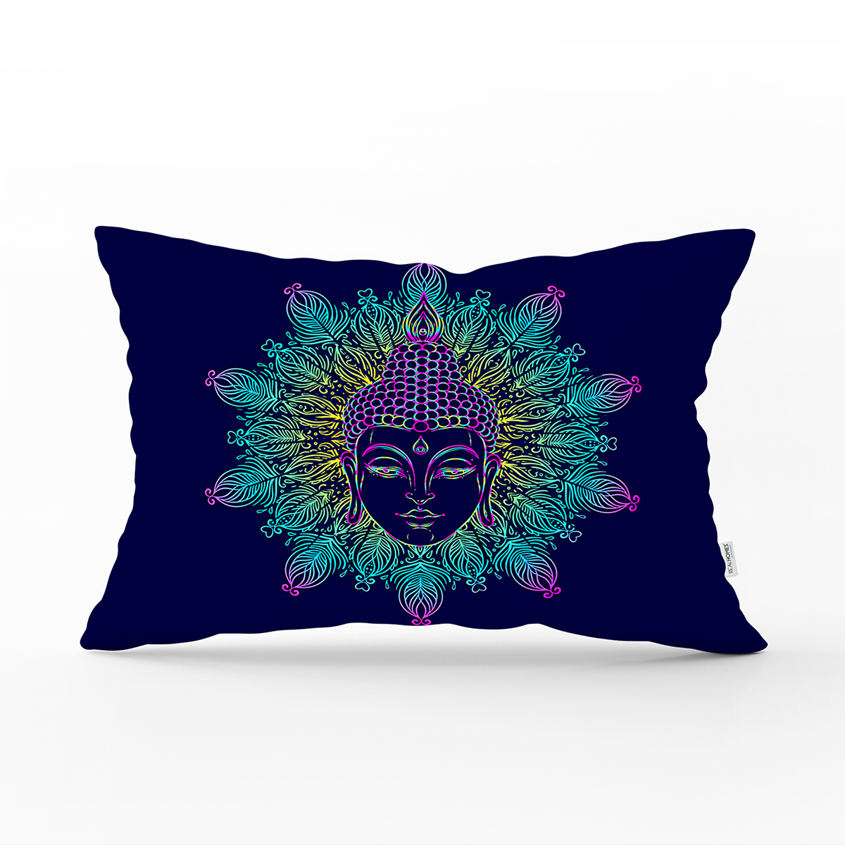 Mandala İçinde Buddha Çizimli Dekoratif Dikdörtgen Kırlent Kılıfı