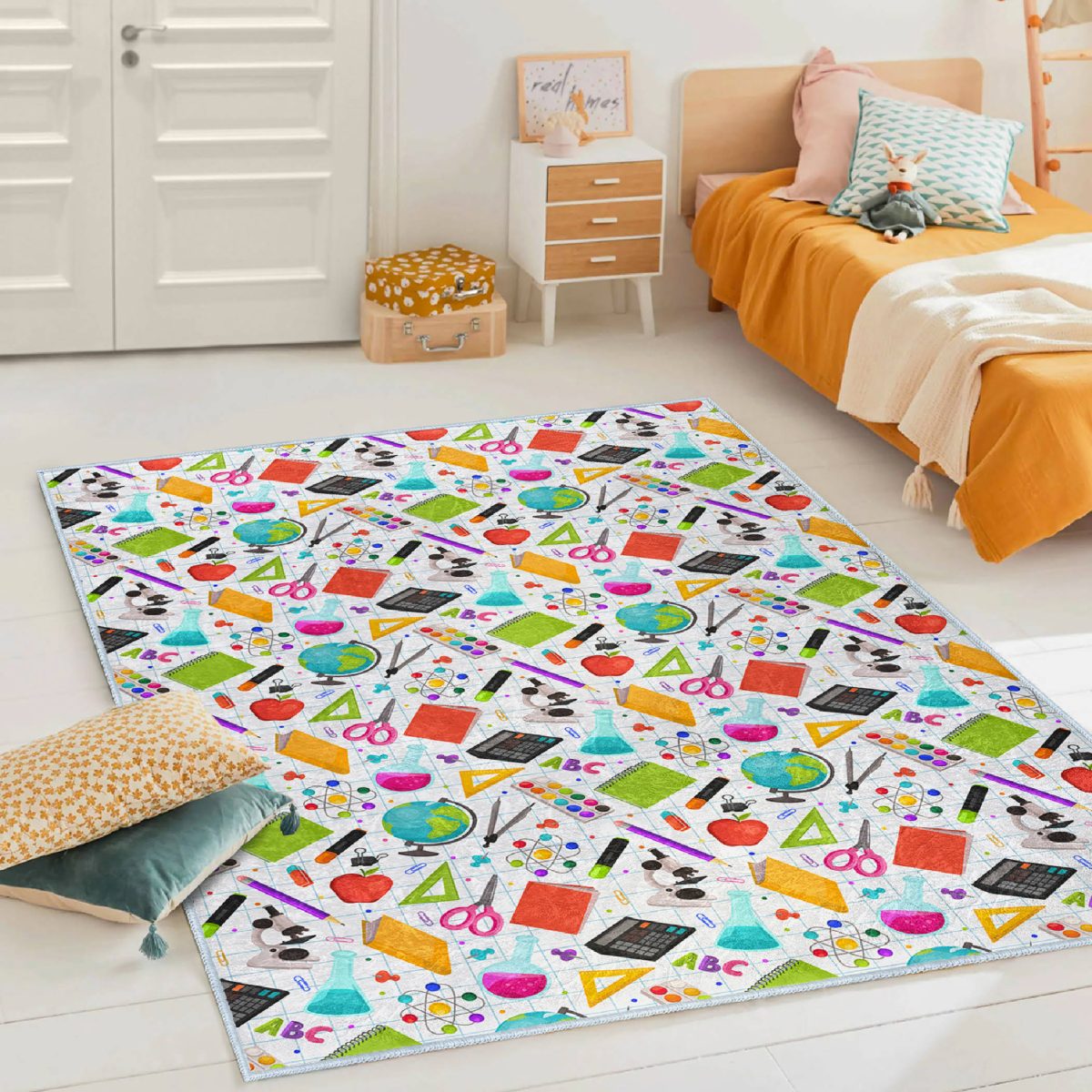 Matematik Gereçli Çocuk & Genç Odası Makinede Yıkanabilir Kaydırmaz Tabanlı Özel Ölçü Dekoratif Dikdörtgen & Kare Çocuk Odası Halısı