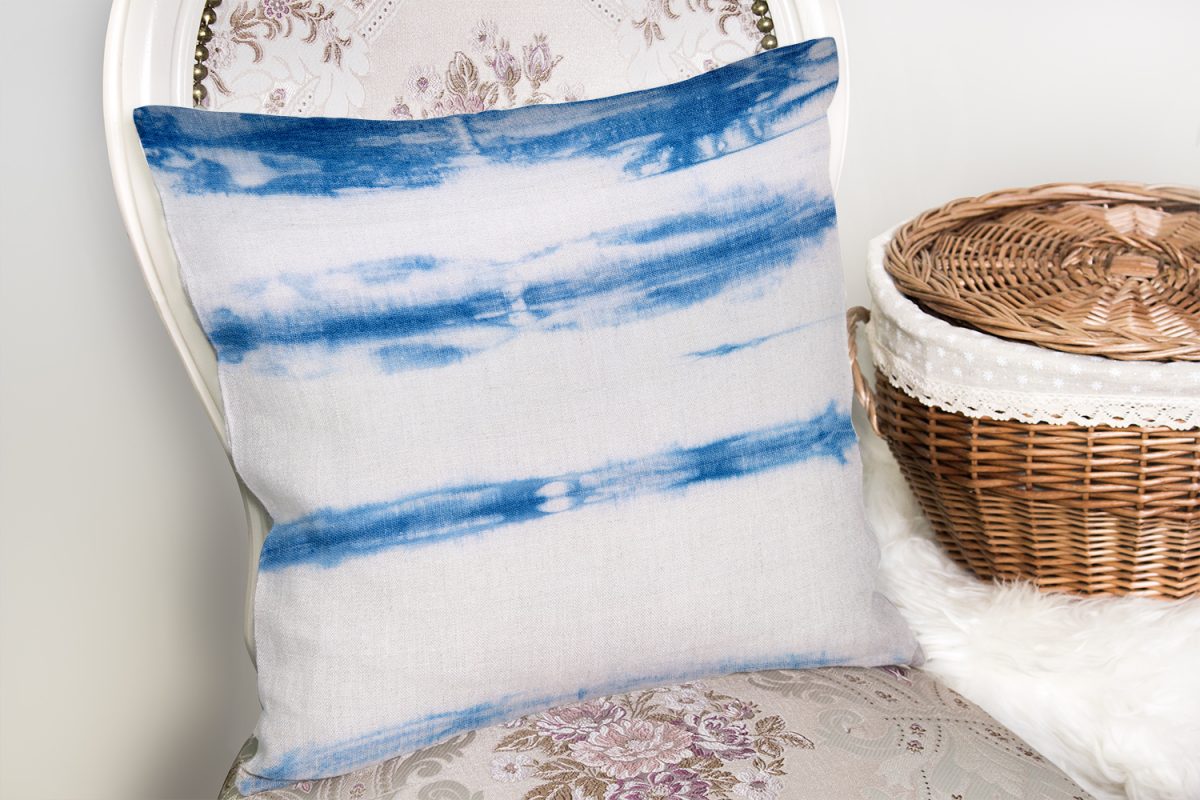 Mavi Beyaz Renkli Dijital Baskılı Modern Kırlent Kılıfı