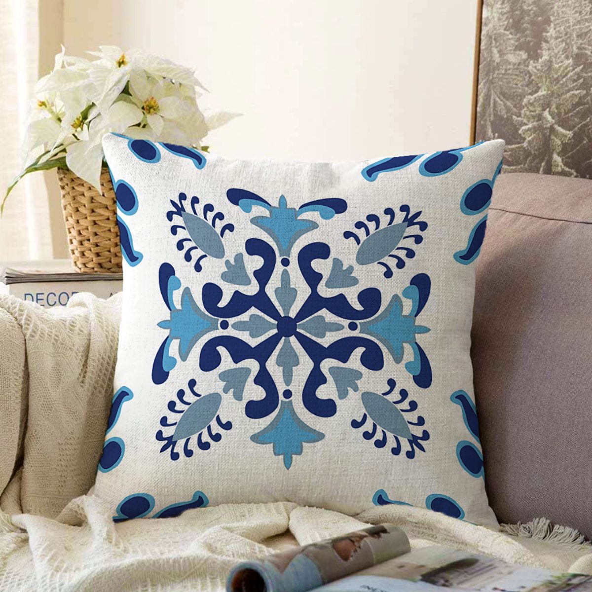 Mavi Çini Motifli Dijital Baskılı Şönil Yastık Kırlent Kılıfı