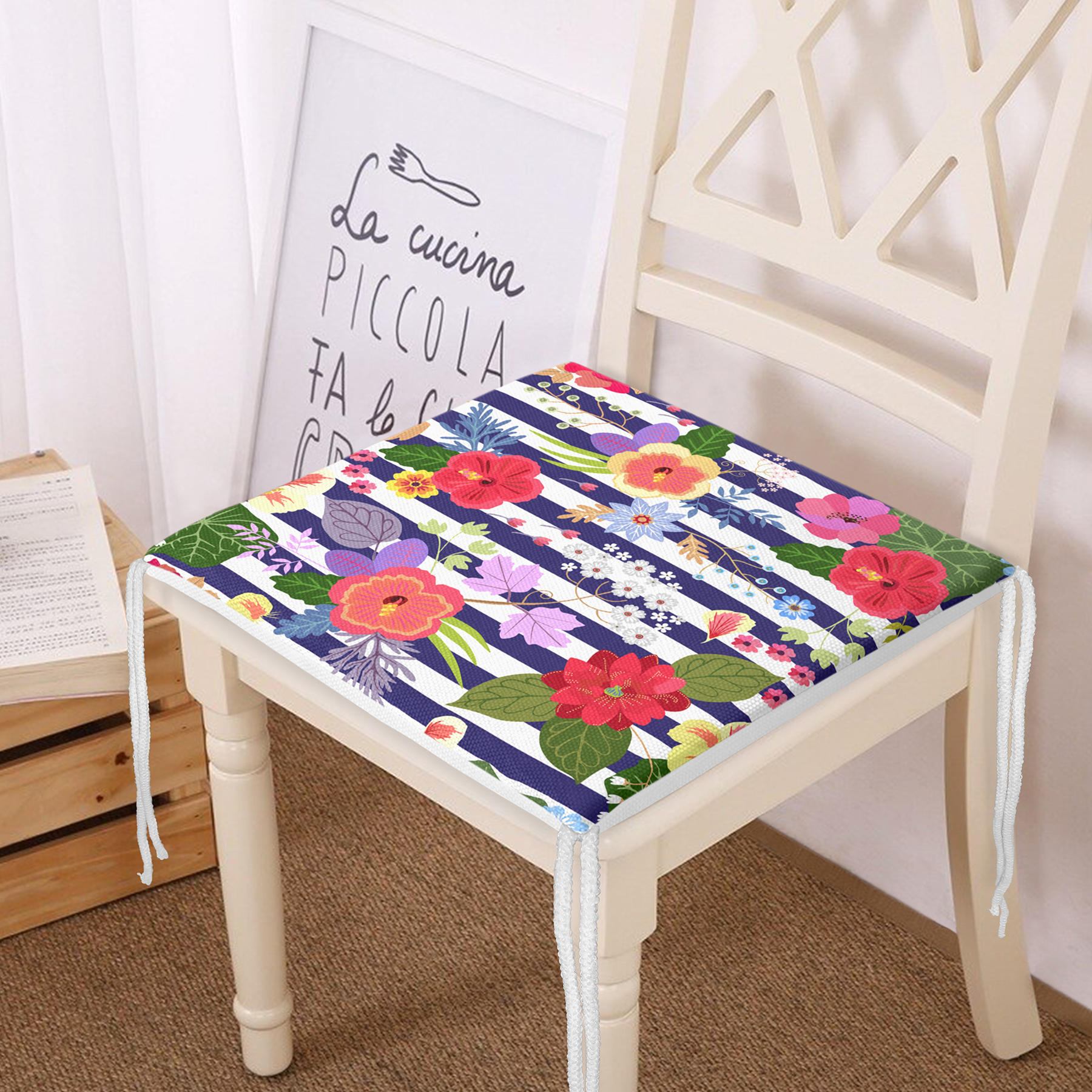 Mavi Çizgili Çiçek Desenli Özel Tasarım Dijital Baskılı Modern Fermuarlı Sandalye Minderi