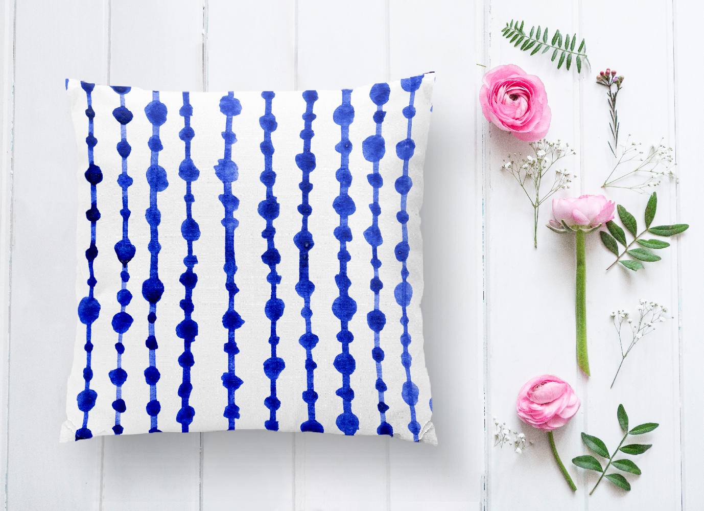 Mavi Çizgili Desenli Dijital Baskılı Modern Kırlent Kılıfı