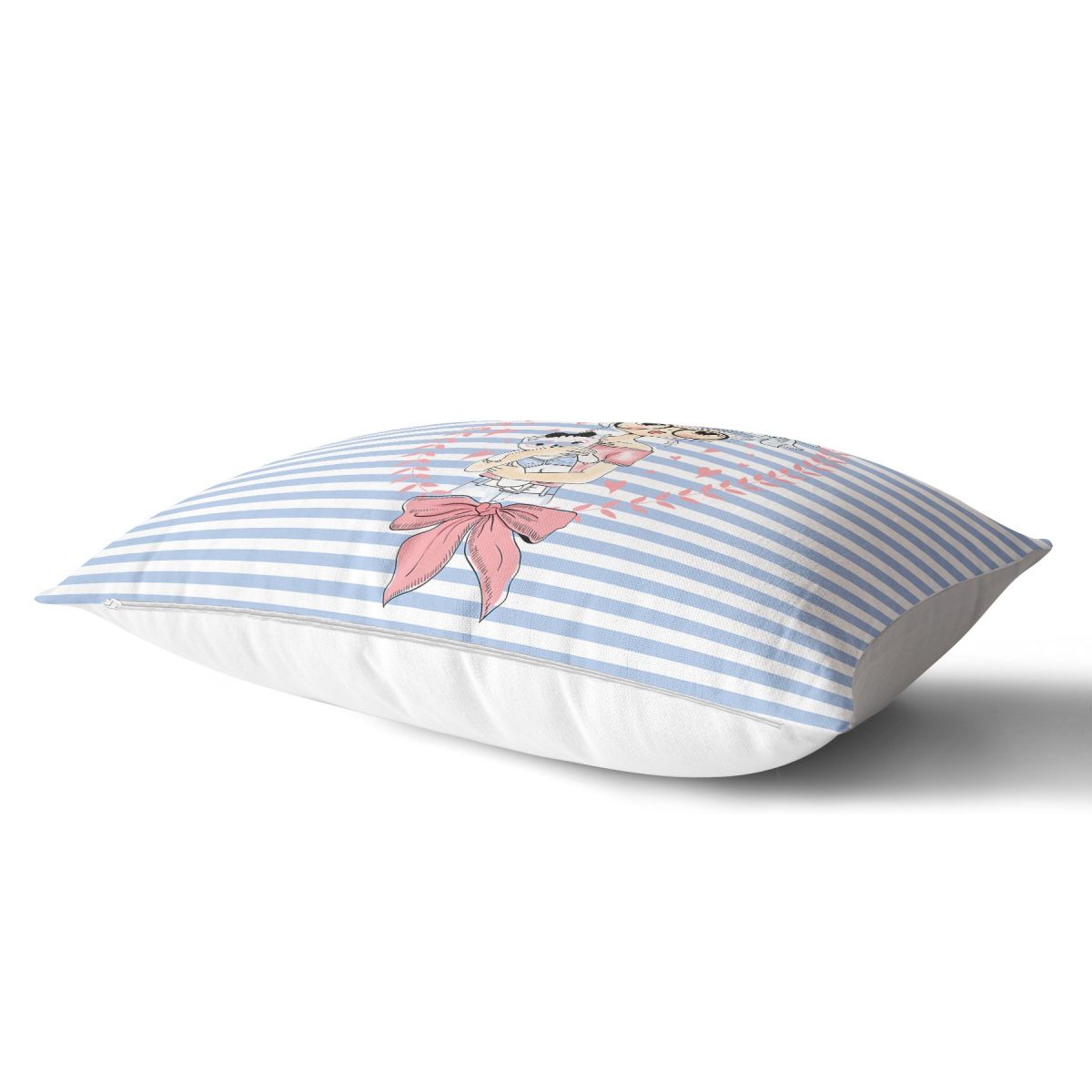 Mavi Çizgili Fashion Gırl Dijital Baskılı Dekoratif Dikdörtgen Yastık Kılıfı