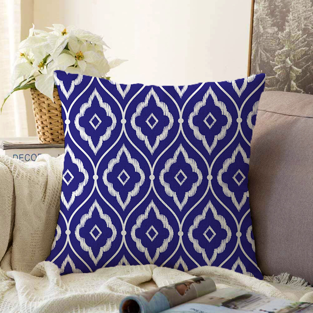 Mavi Etnik Motifli Dijital Baskılı Modern Raşel Kadife Yastık Kırlent Kılıfı