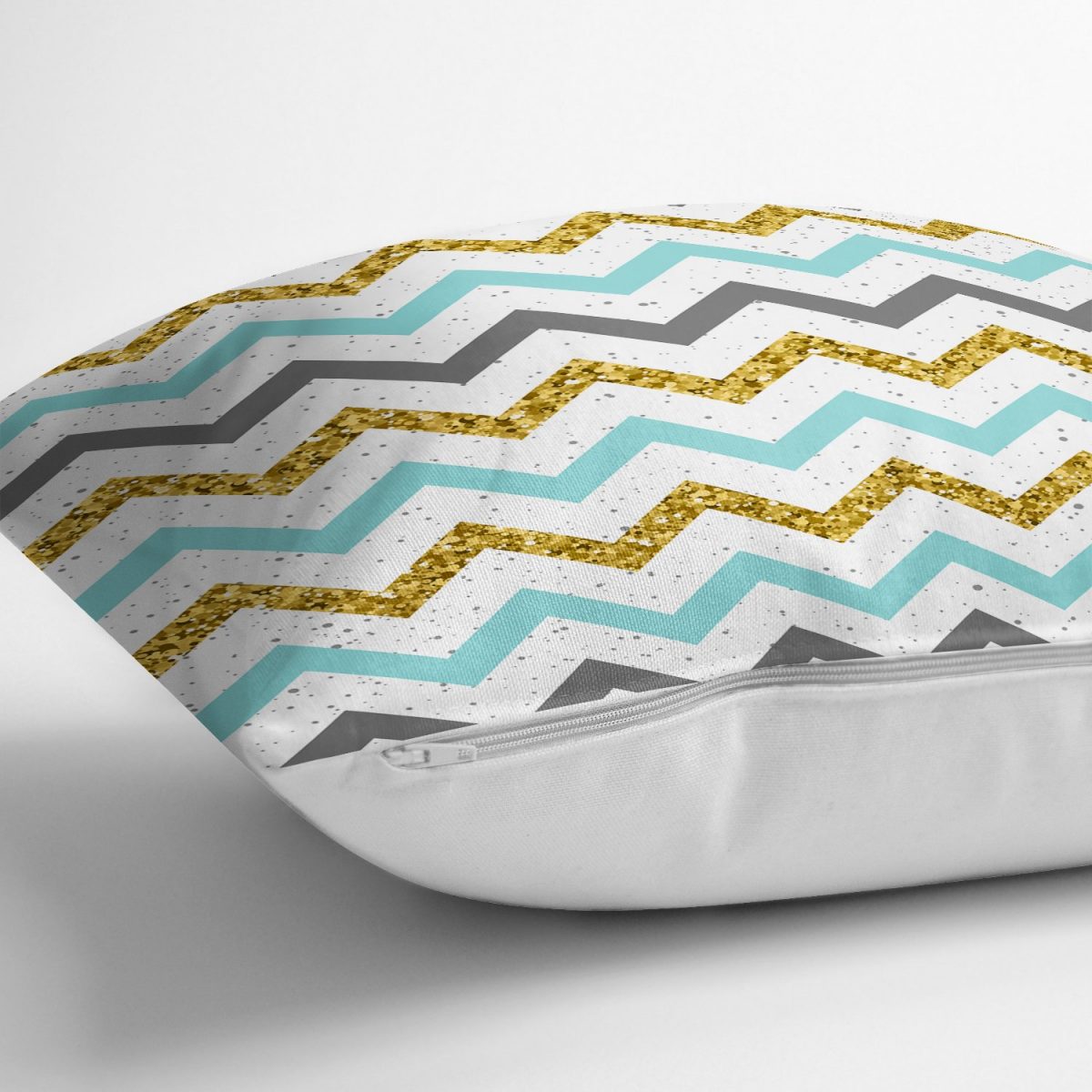 Mavi Gri Gold Zigzag Desenli Özel Tasarımlı Yastık Kırlent Kılıfı