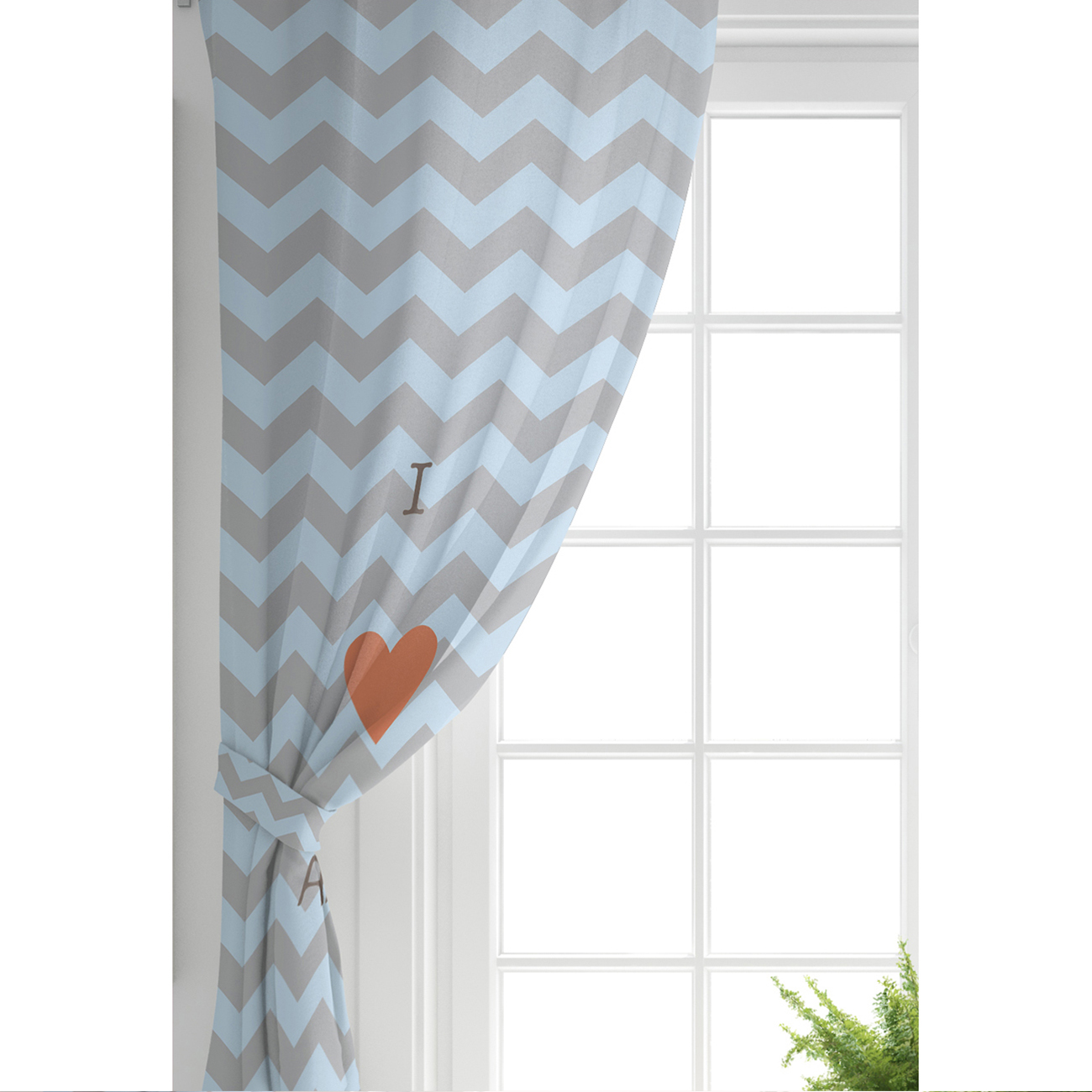 Mavi Gri Zigzaglı I Love Animal Desenli Çocuk Odası Fon Perde