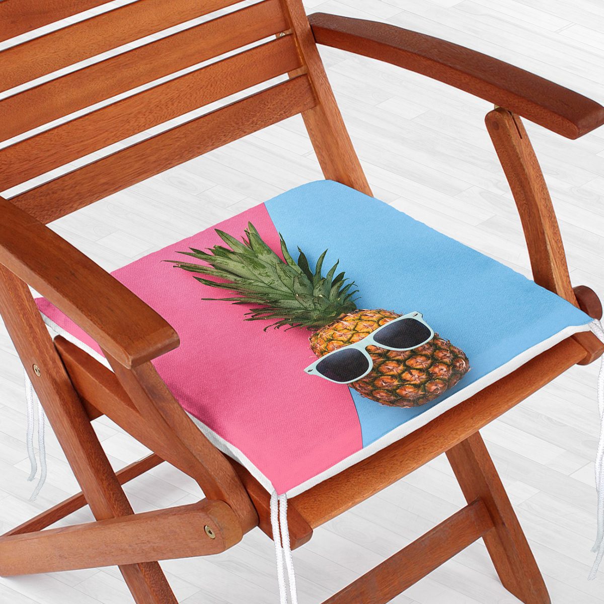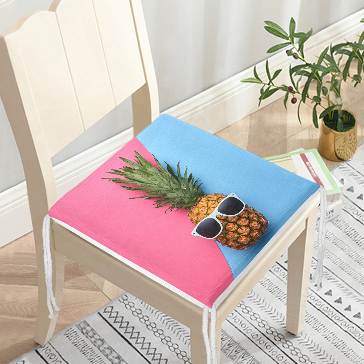 Mavi Pembe Ananas Desenli Modern Fermuarlı Sandalye Minderi