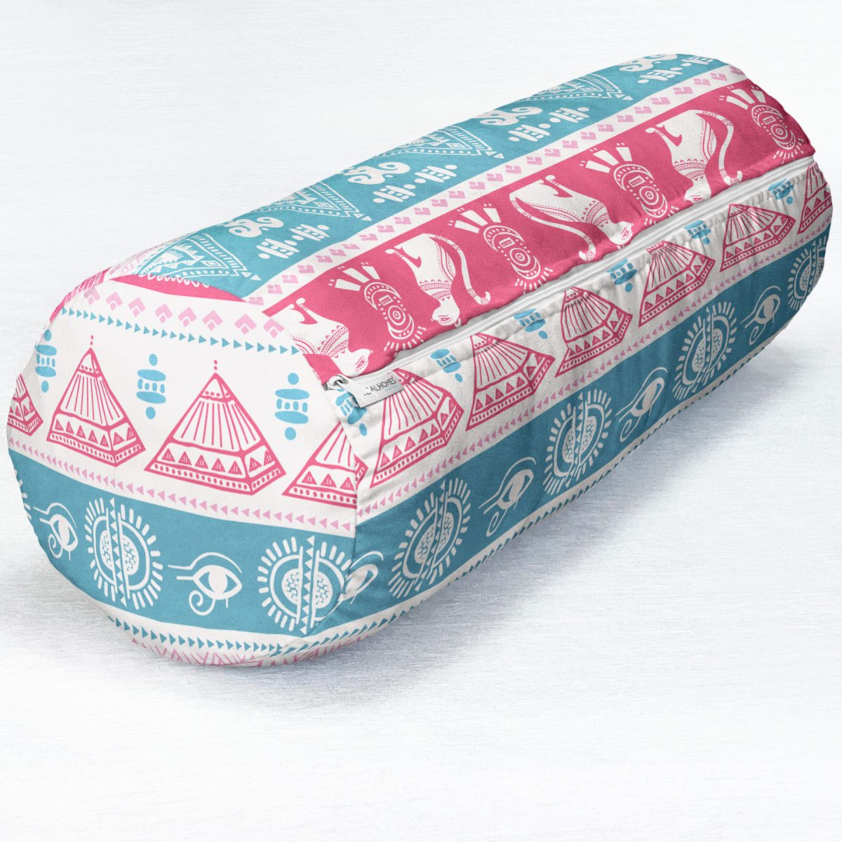 Mavi Pembe Etnik Desenli Dekoratif İç Dolgulu Yumuşak Silindir Form Yastık Kırlent