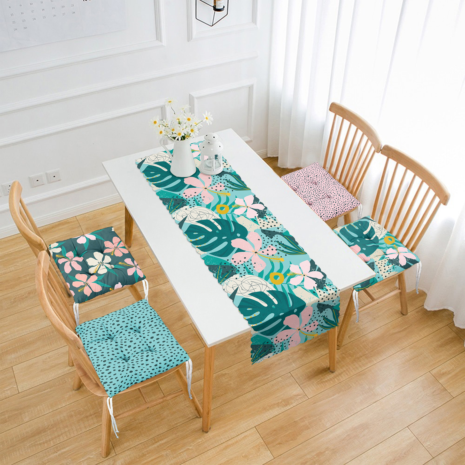 Modern Yaprak Tasarımlı 4 Pofuduk Sandalye Minderi ve 1 Runner Seti