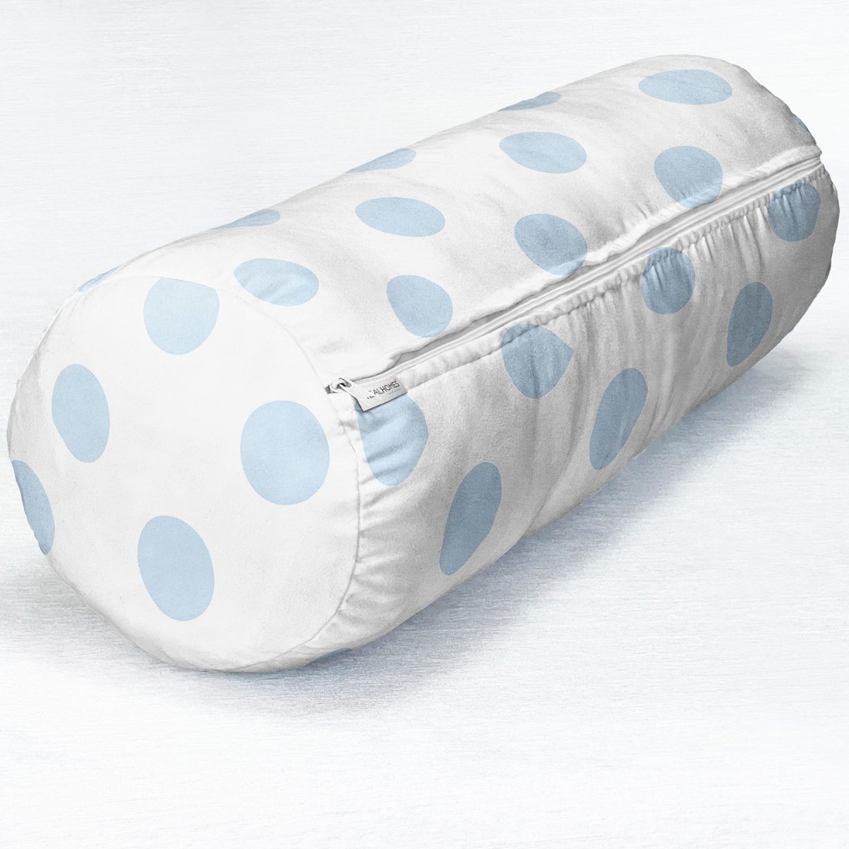 Mavi Puantiyeli Dijital Baskılı Dekoratif İç Dolgulu – Fermuarlı Süet Silindir Daire Yastık Kırlent