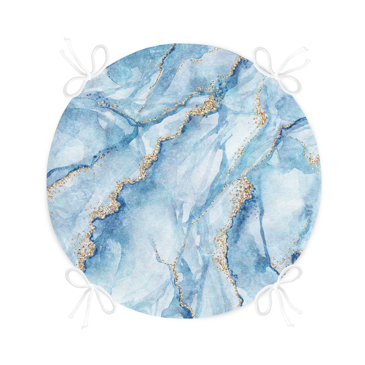 Mavi Renkli Mermer Desenli Dijital Baskılı Yuvarlak Fermuarlı Sandalye Minderi