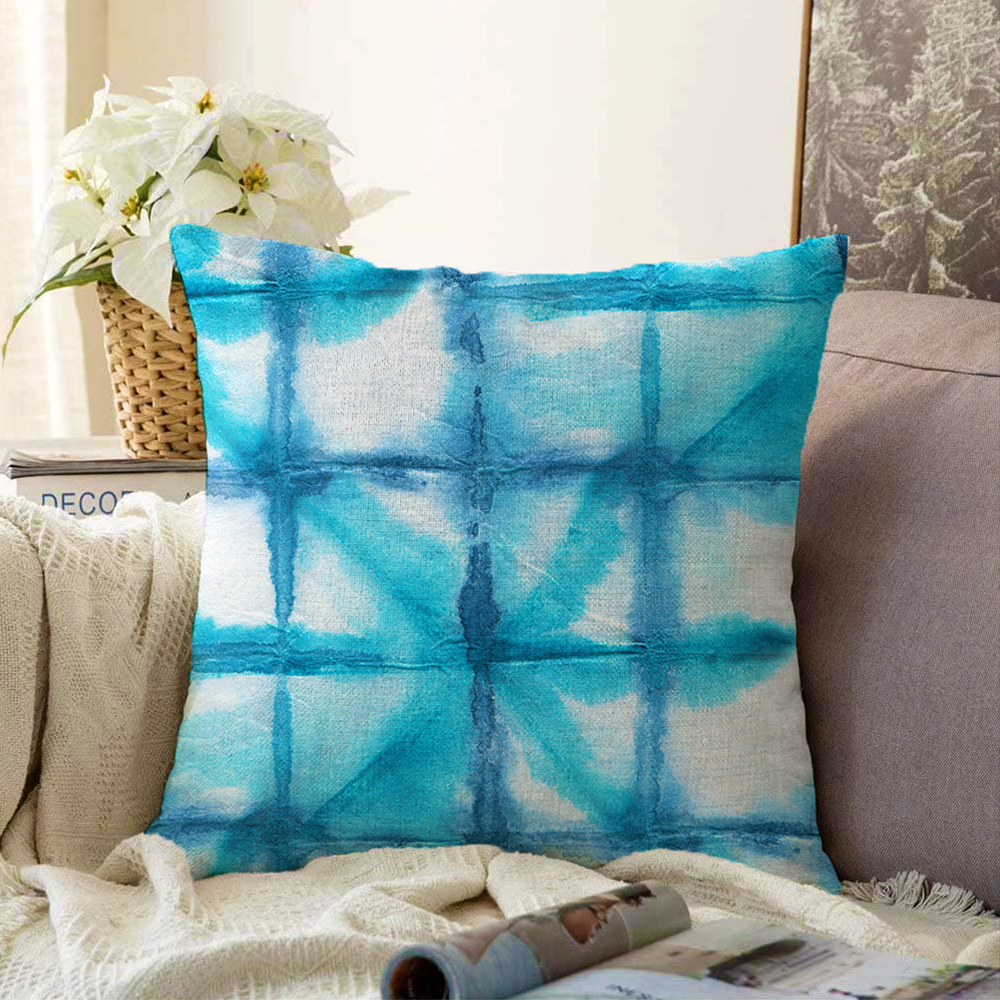Mavi Sulu Boya Desenli Dijital Baskılı Modern Raşel Kadife Yastık Kılıfı