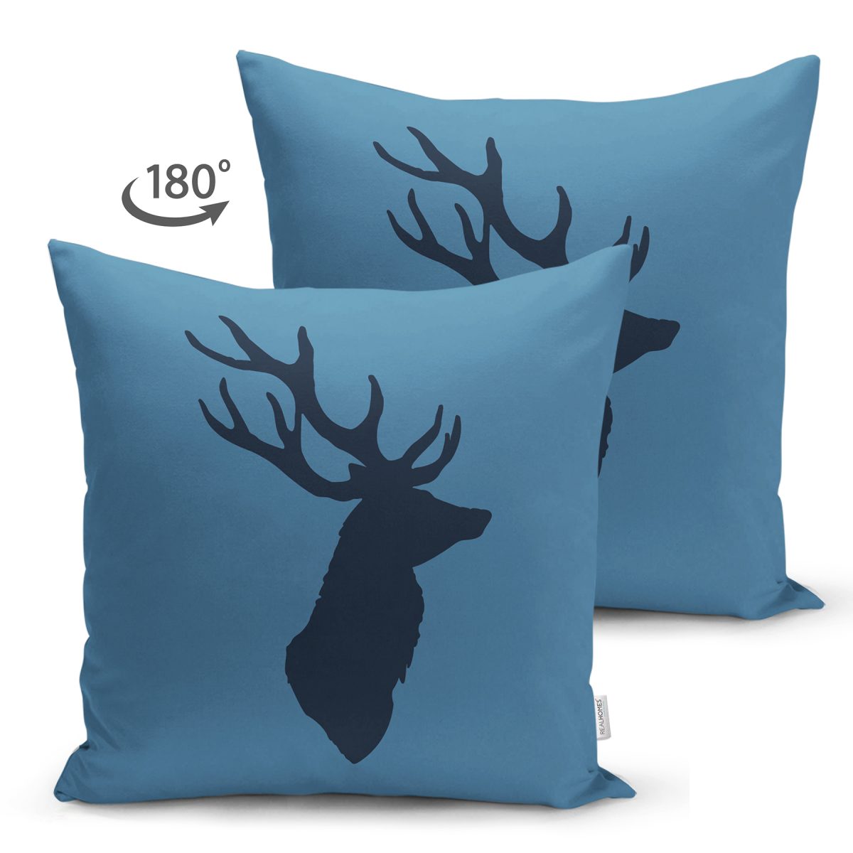 Mavi Zemin Lacivert Geyik Tasarımlı Modern Süet Yastık Kırlent Kılıfı Realhomes