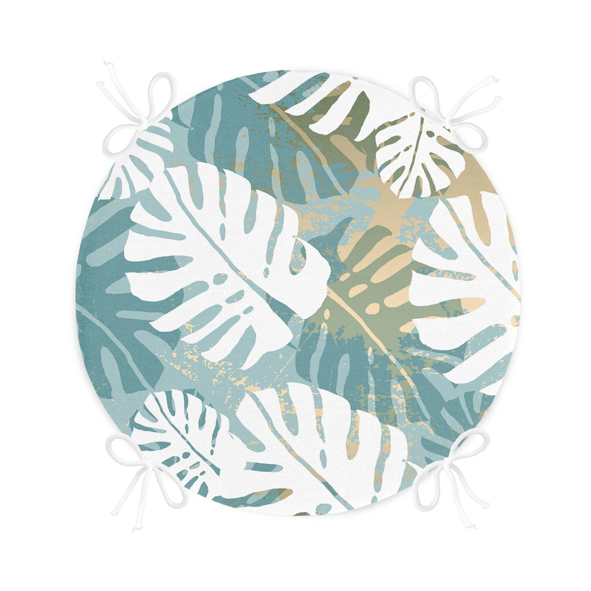 Mavi Zemin Yapraklı Tasarım Desenli Dijital Baskılı Yuvarlak Fermuarlı Sandalye Minderi Realhomes