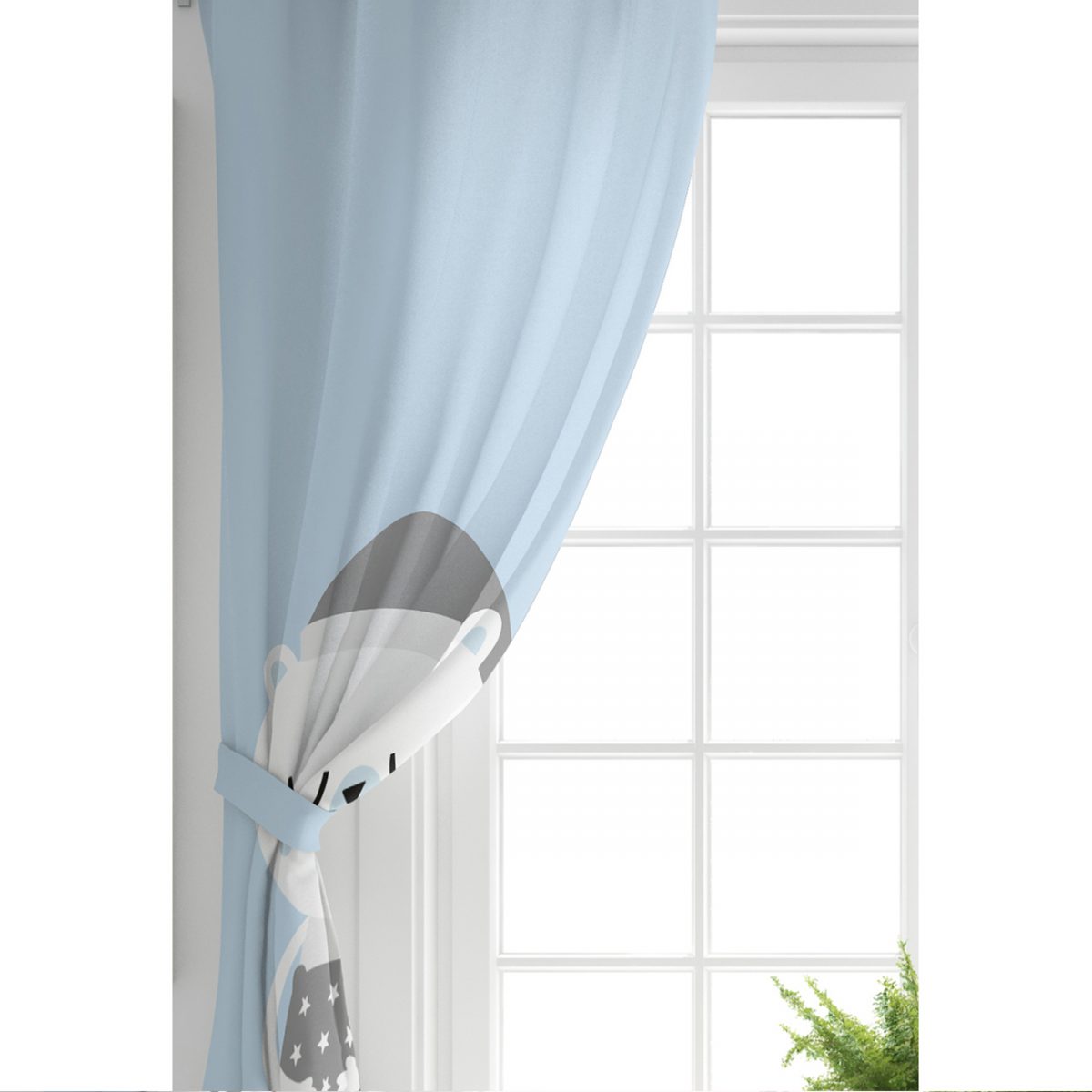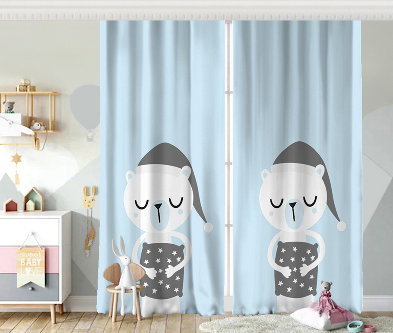 Mavi Zeminde Ayıcık Tasarımlı Bebek Odası Fon Perde