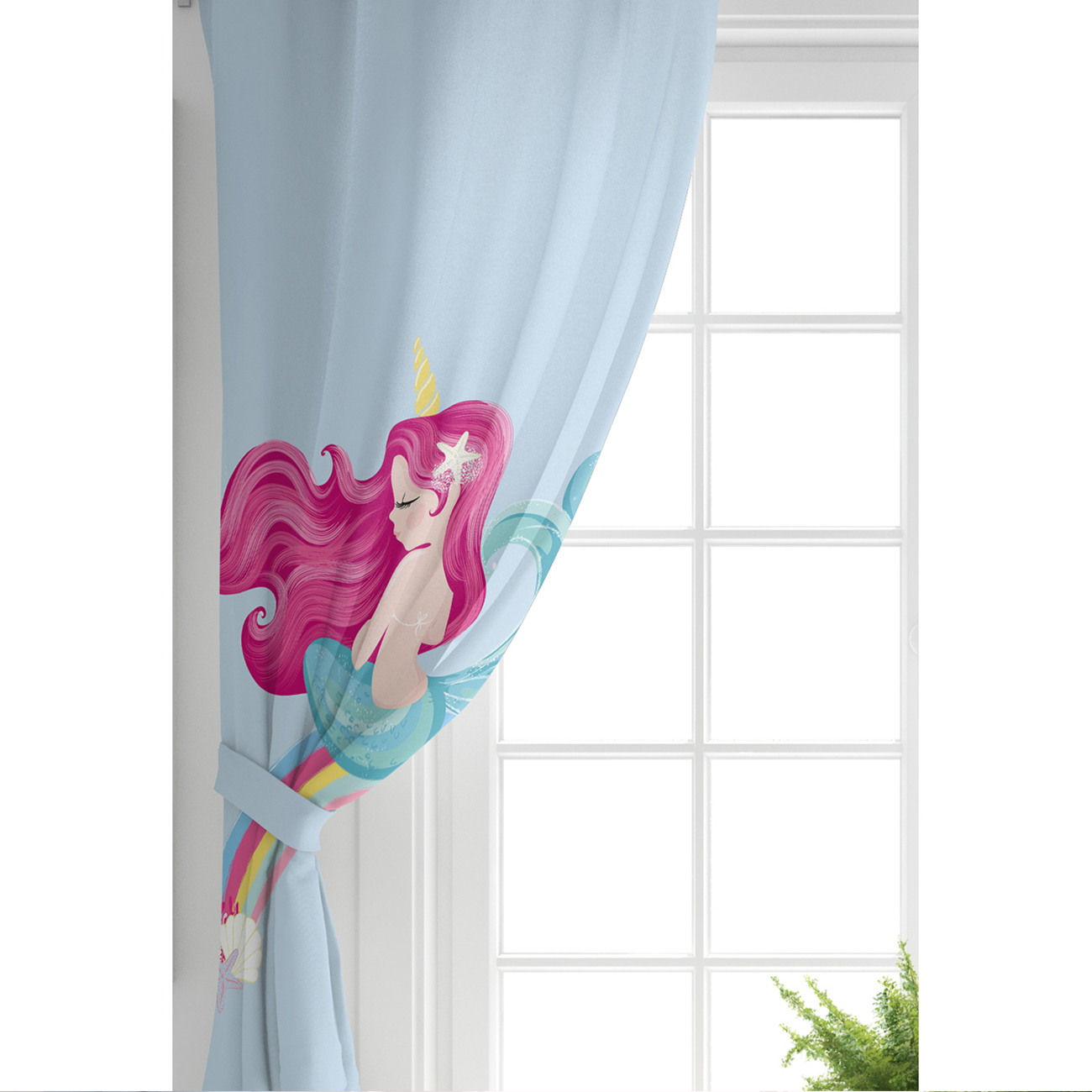 Mavi Zeminde Denizkızı Desenli Dijital Baskılı Çocuk Odası Fon Perde