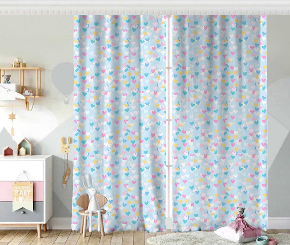 Mavi Zeminde Rengarenk Kalpler Çocuk Odası Fon Perde