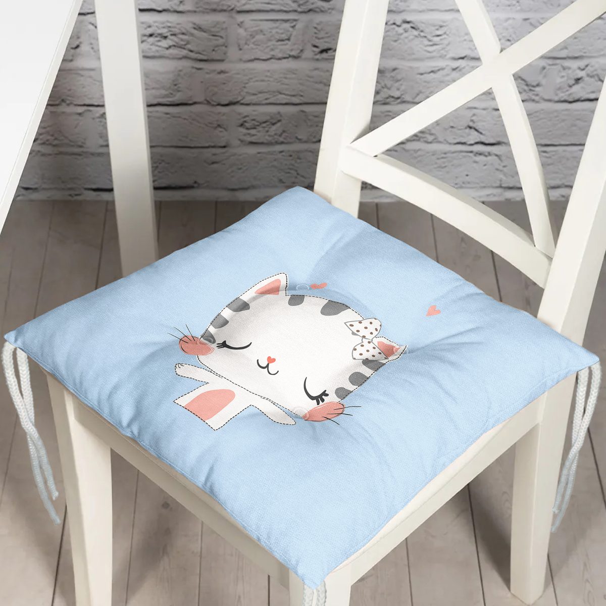 Mavi Zeminde Sevimli Kedicik Desenli Modern Pofuduk Sandalye Minderi Realhomes