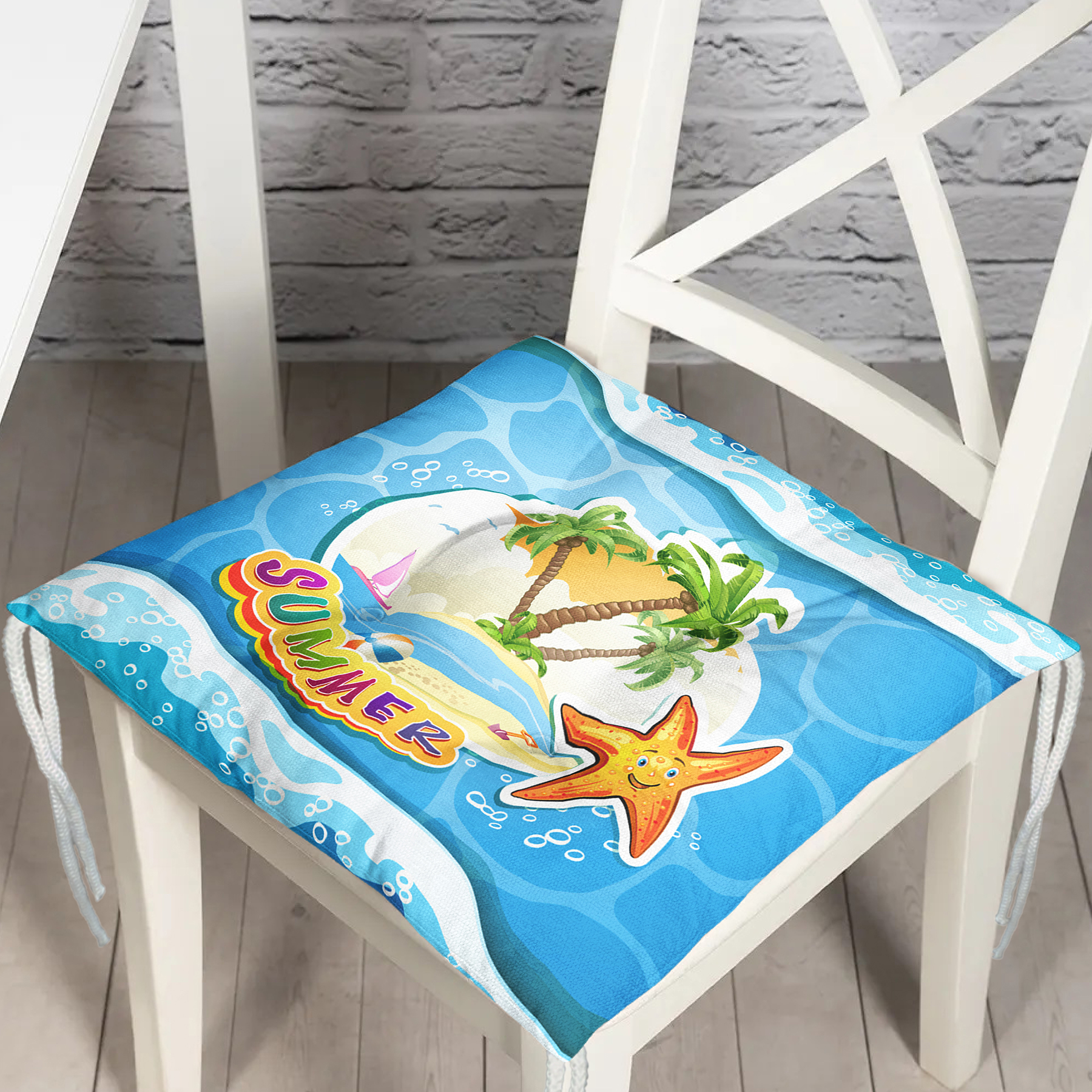 Mavi Zeminde Summer Motifli Dijital Baskılı Modern Pofuduk Sandalye Minderi