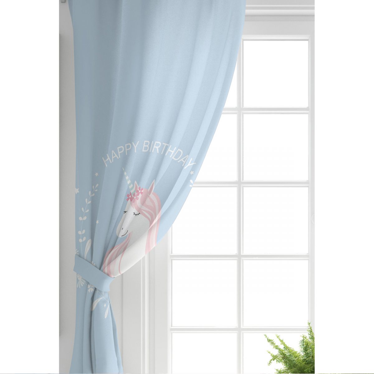 Mavi Zeminde Unicorn At Tasarımlı Bebek Odası Fon Perde