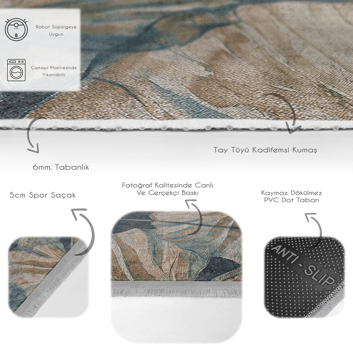 RealHomes Dijital Baskılı Kaymaz Tabanlı Deluxe Halılar, kumaş seçimi ve püsküllü dikiş detaylarıyla şık bir dekorasyon öğesi olarak kullanımınıza sunulmaktadır. Her bir desen RealHomes tasarımcıları tarafından özenle tasarlanmış ve satışa sunulmuştur. Fotoğraf kalitesinde canlı ve gerçekçi baskılarımız yıkamaya ve kullanıma bağlı olarak solma yapmaz, yıllar boyu ilk günkü özelliğini korur.