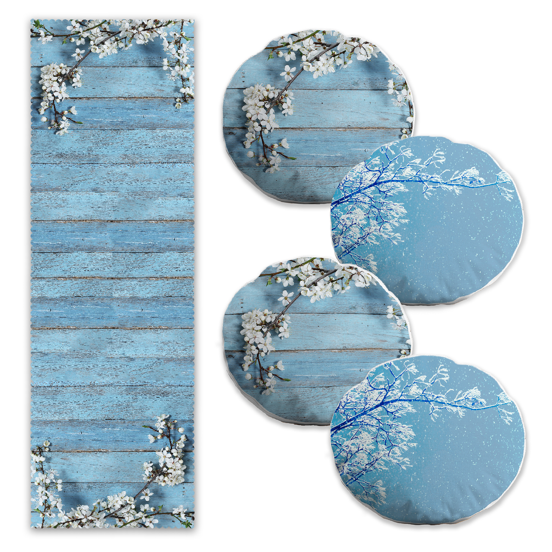 Mavinin Uyumu Tasarımlı 4 Yuvarlak Kırlent Kılıfı ve 1 Runner Seti