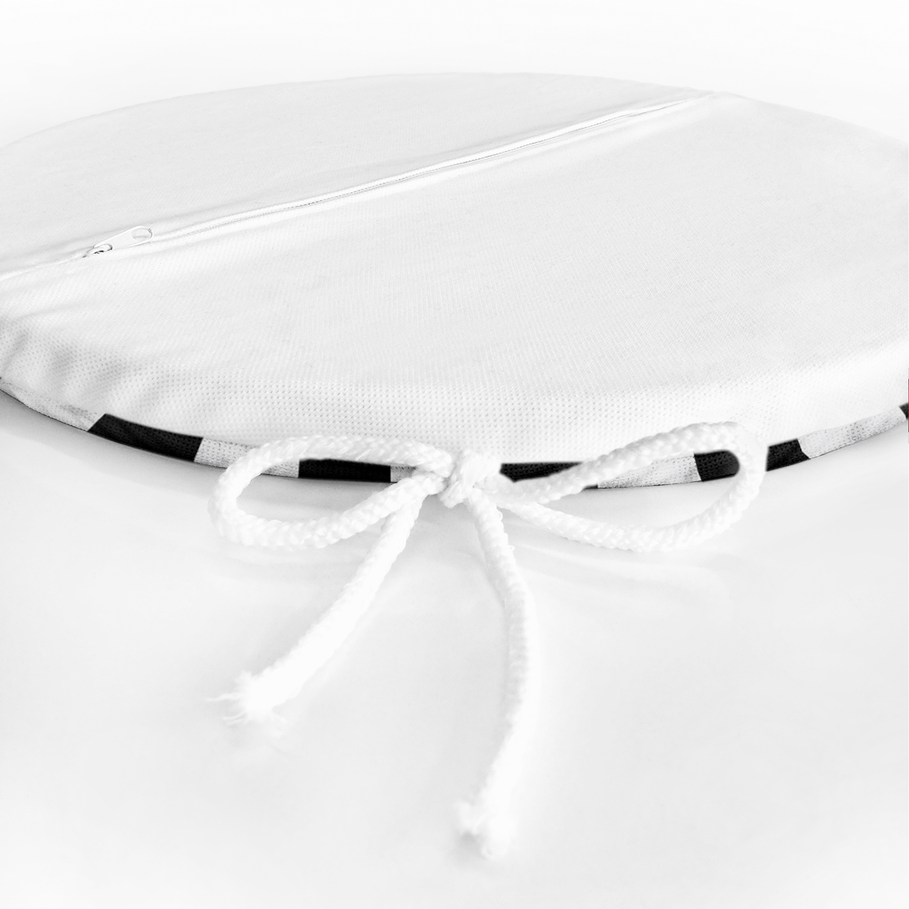 Mermer ve Siyah Çizgili Dijital Baskılı Yuvarlak Fermuarlı Sandalye Minderi
