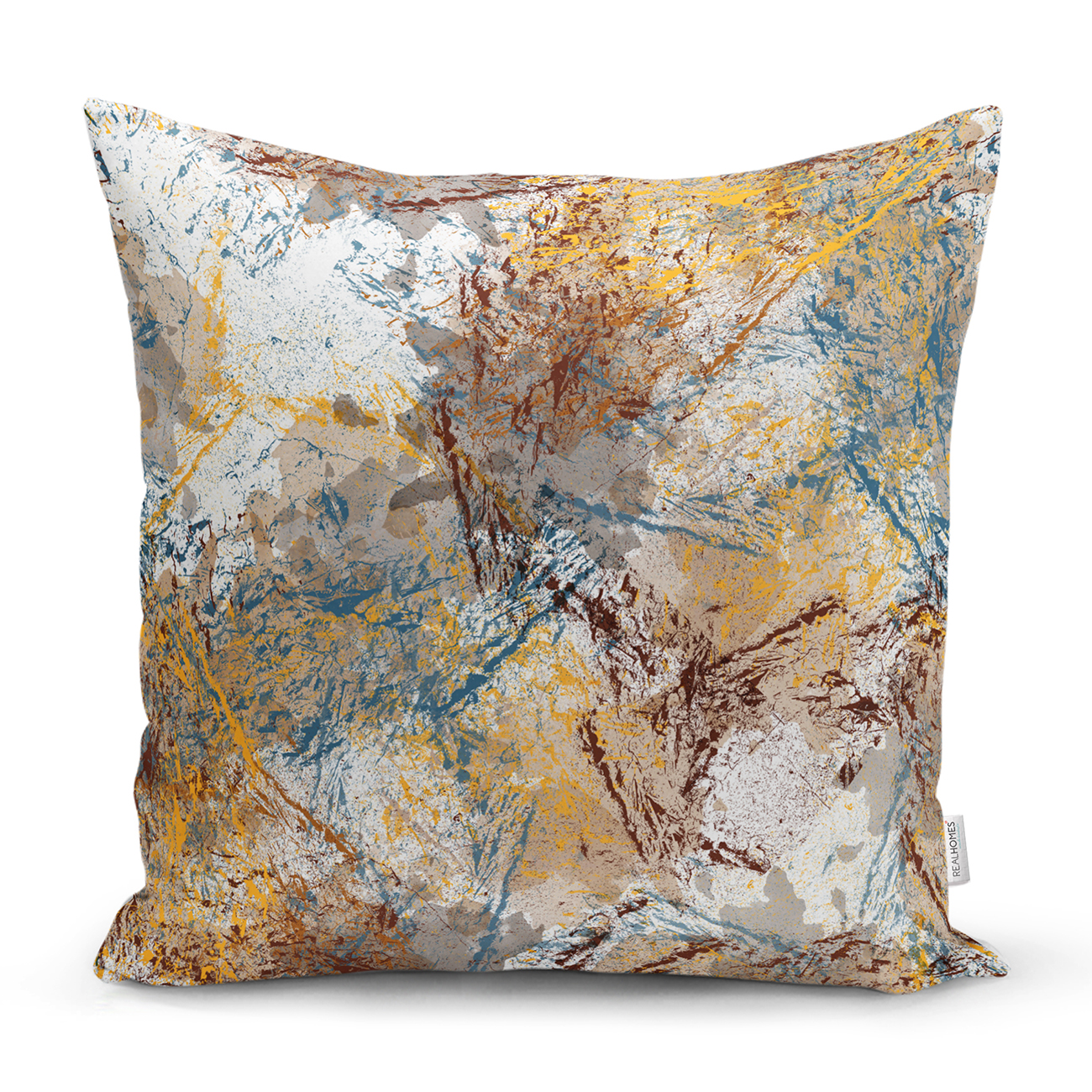 Mermer Zeminde Gold Sulu Boya Çalışması Desenli Kırlent Kılıfı Realhomes