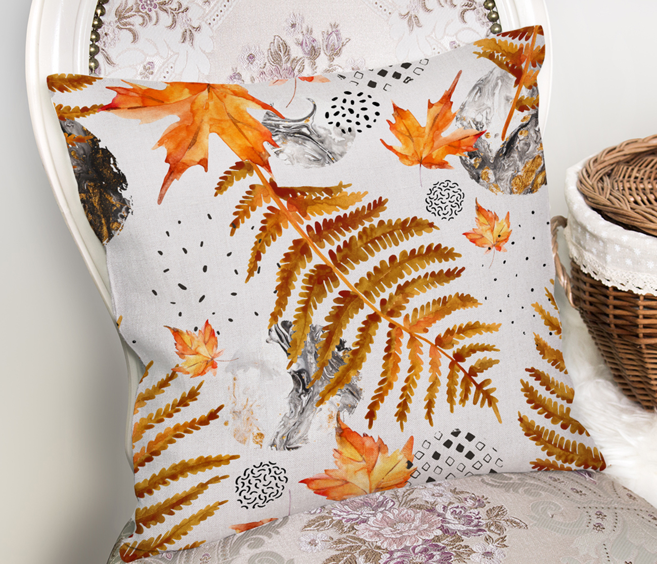 Mermer Zeminde Kurumuş Yaprak Dijital Basklılı Dekoratif Kırlent Kılıfı