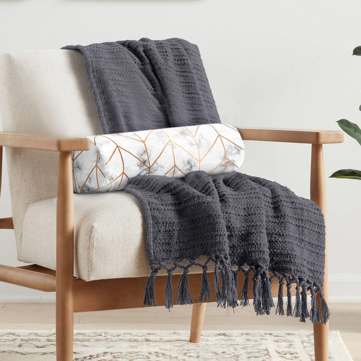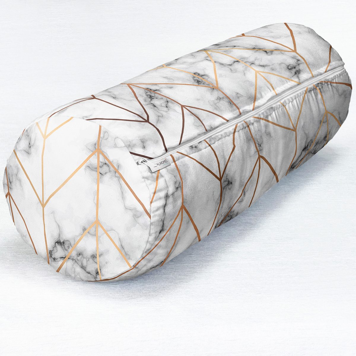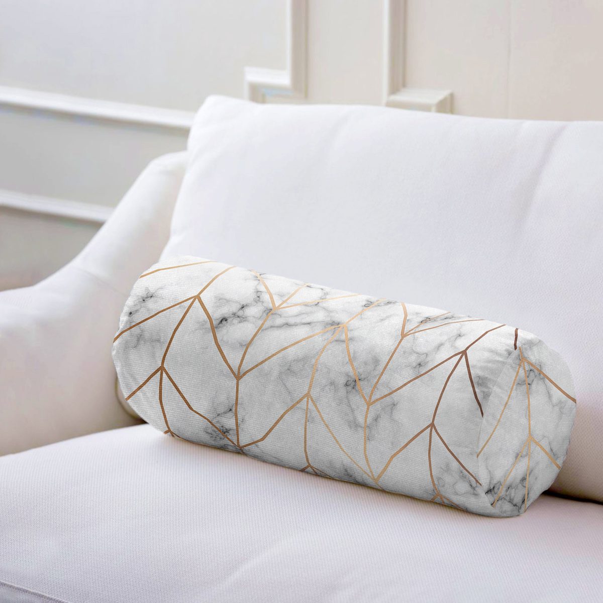 Mermer Zeminli Geometrik Desenli Modern İç Dolgulu Süet Silindir Yastık Kırlent – Bel Yastığı