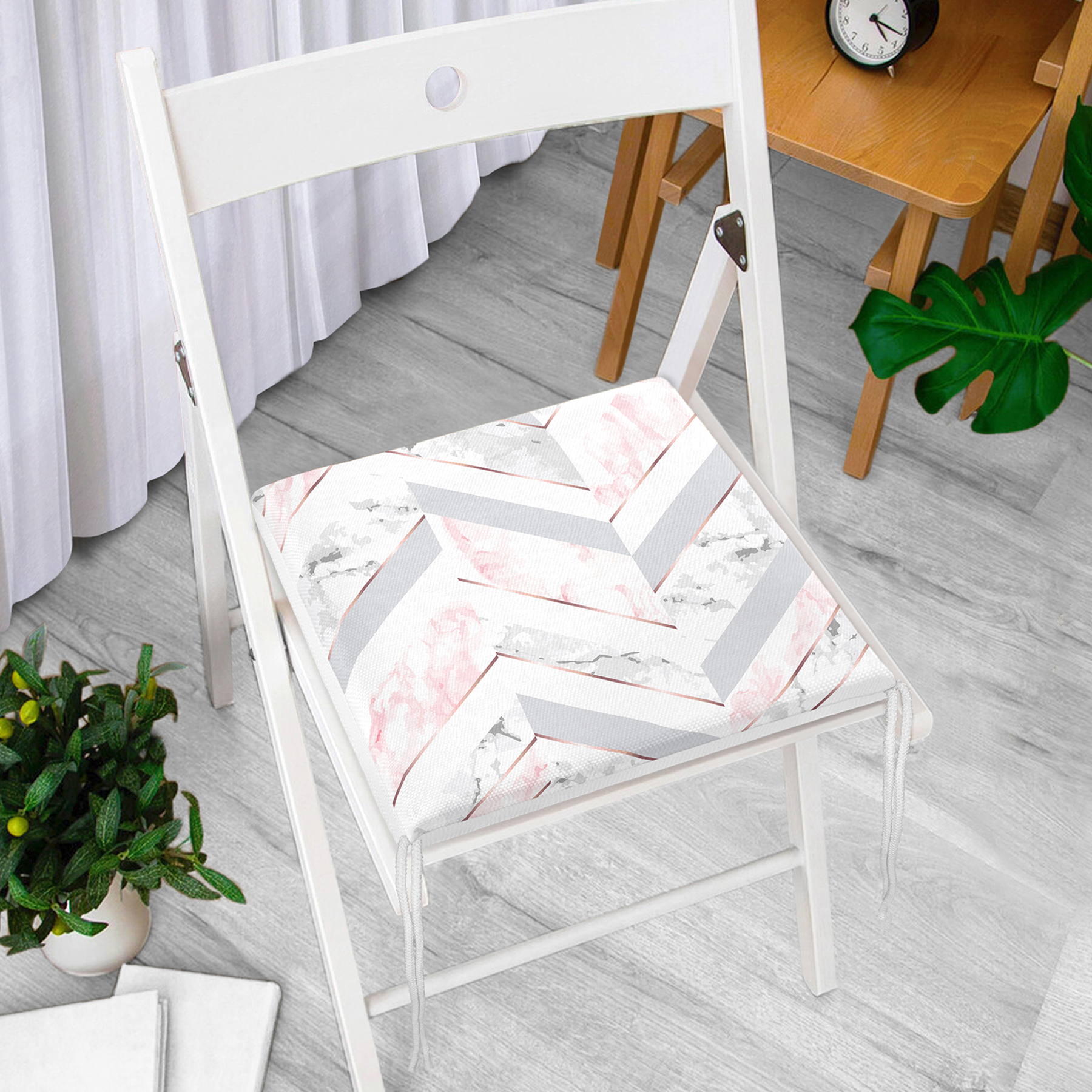 Mermer Zeminli Geometrik Tasarımlı Fermuarlı Sandalye Minderi Realhomes