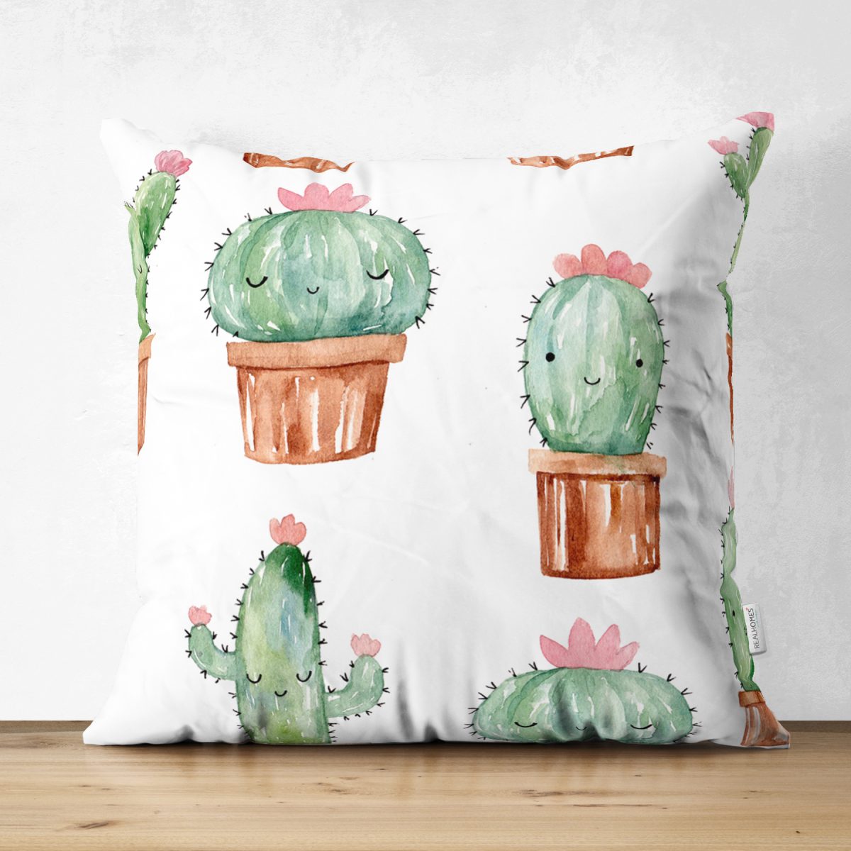 Minimal Kaktüs Tasarımlı Süet Yastık Kırlent Kılıfı