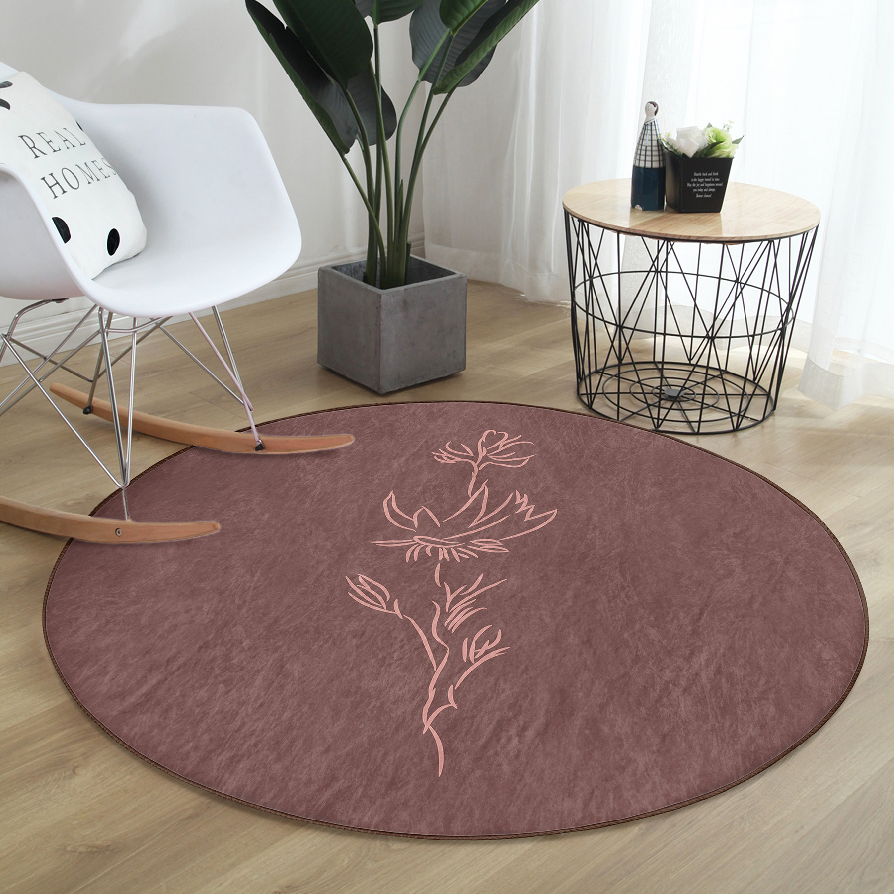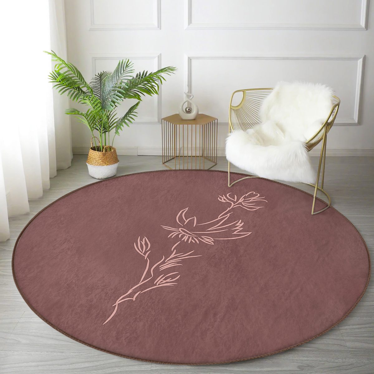 Minimalist Özel Tasarımlı Dijital Baskılı Kahverengi Salon ve Oturma Odası Yıkanabilir Kaymaz Tabanlı Yuvarlak Halı