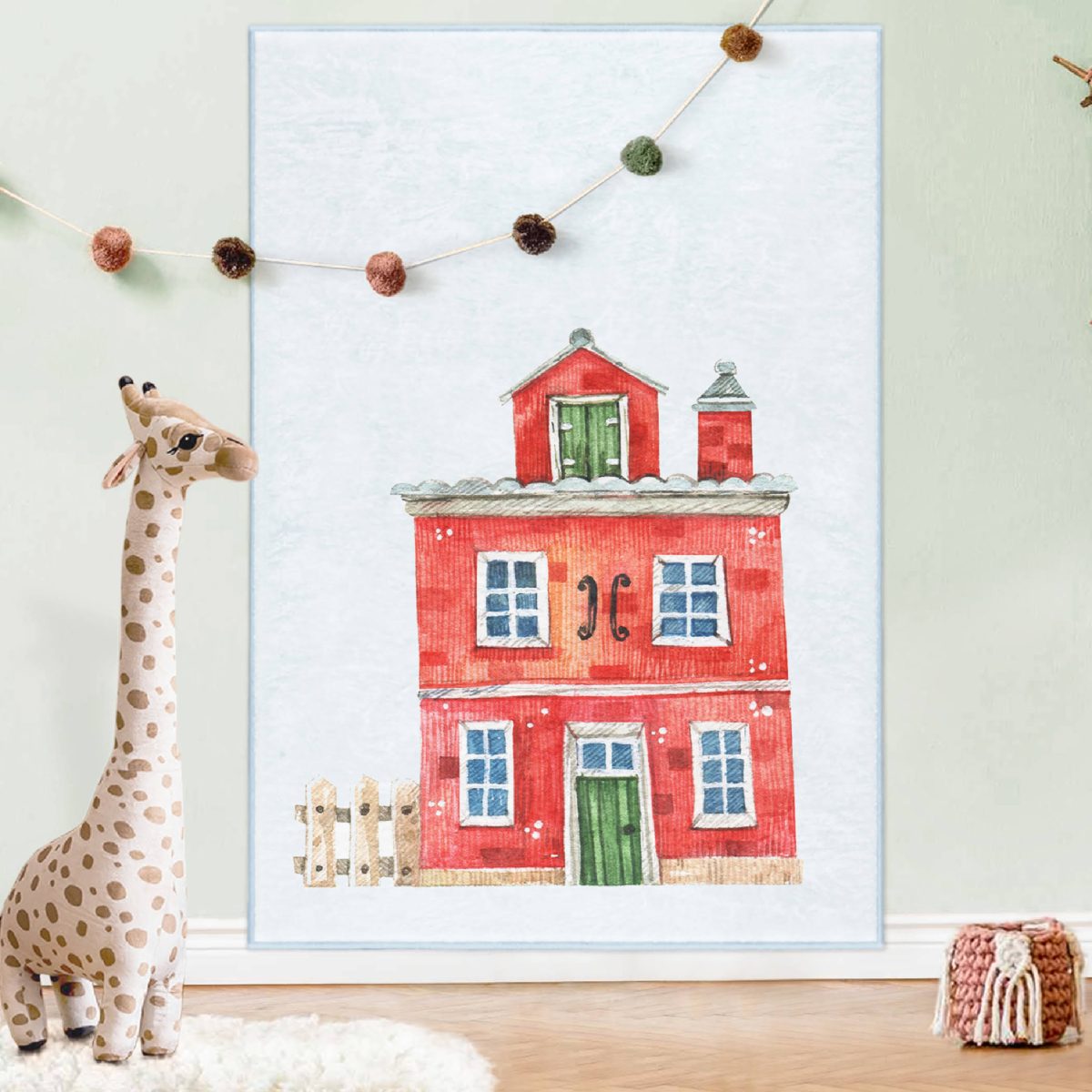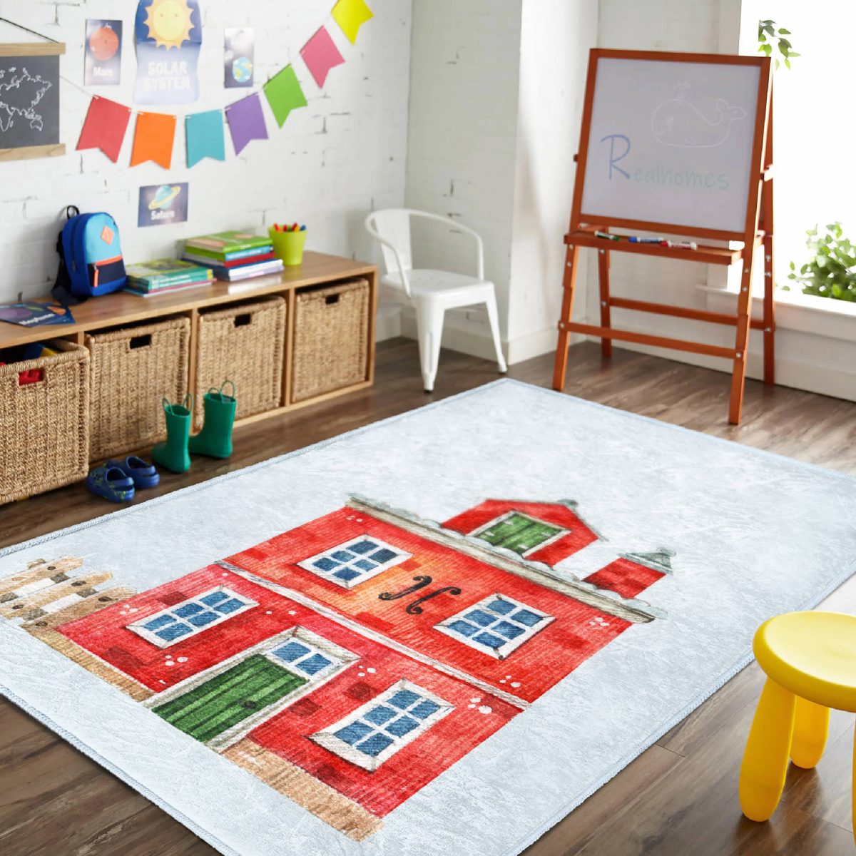 Minyatür Kırmızı Ev Tasarımlı Çocuk & Genç Odası Makinede Yıkanabilir Kaymaz Tabanlı Özel Ölçü Dikdörtgen Çocuk & Genç Halısı