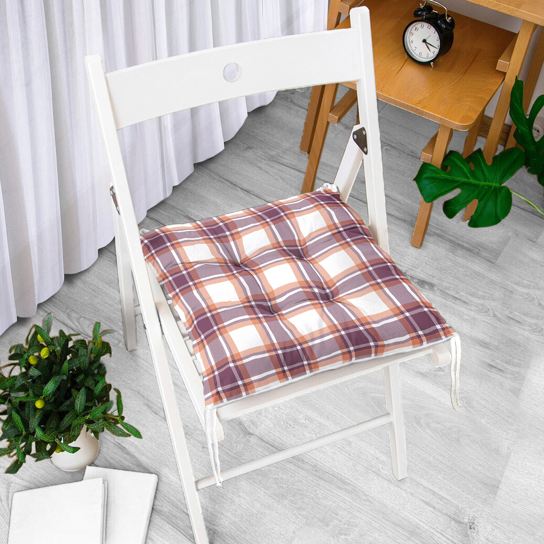 Modern Ekose Tasarımlı Pofuduk Sandalye Minderi