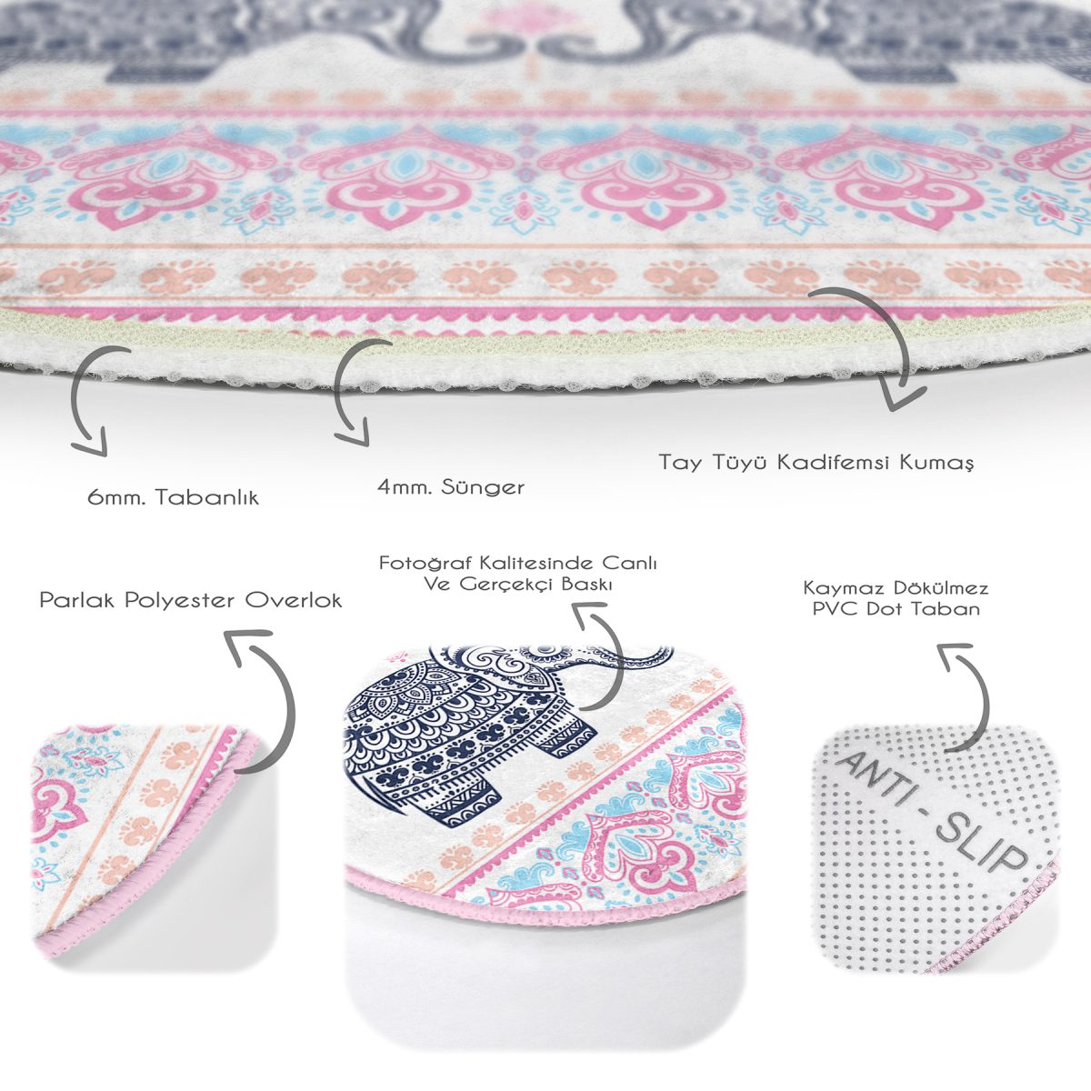 RealHomes Dijital Baskılı Kaymaz Tabanlı Comfort Yuvarlak Halılar, kumaş seçimi ve dikiş detaylarıyla şık bir dekorasyon öğesi olarak kullanımınıza sunulmaktadır. Her bir desen RealHomes tasarımcıları tarafından özenle tasarlanmış ve satışa sunulmuştur. Fotoğraf kalitesinde canlı ve gerçekçi baskılarımız yıkamaya ve kullanıma bağlı olarak solma yapmaz, yıllar boyu ilk günkü özelliğini korur.