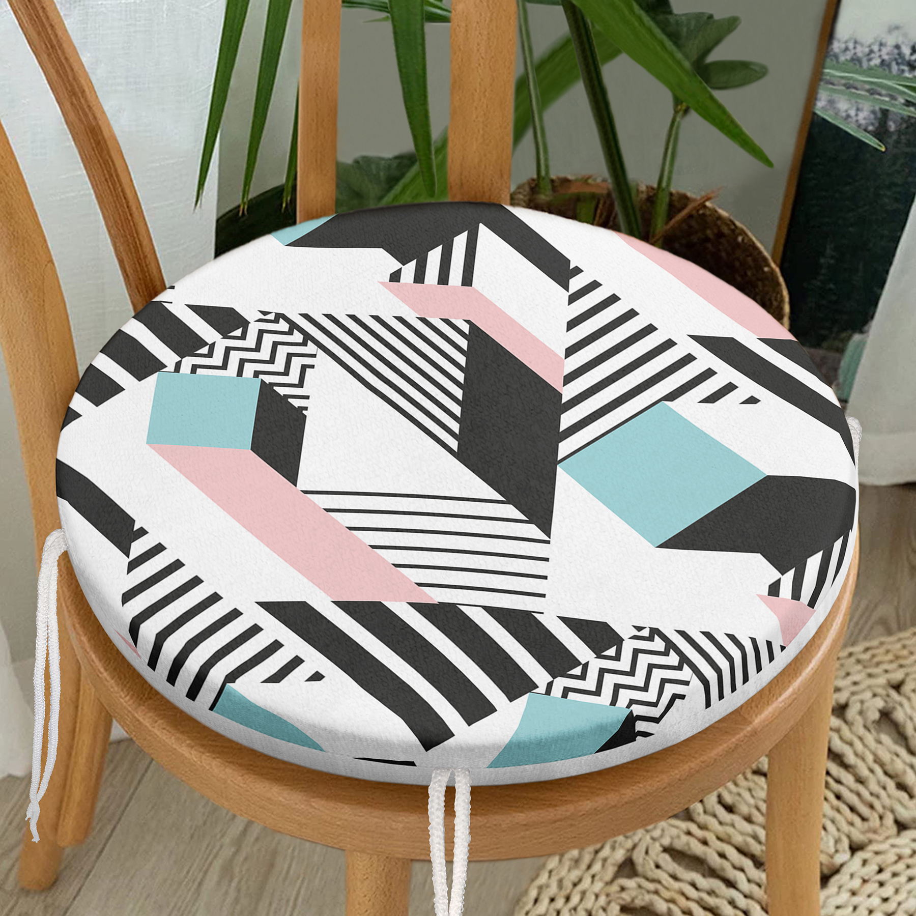 Modern Geometrik Şekilli Dijital Baskılı Yuvarlak Fermuarlı Sandalye Minderi Realhomes