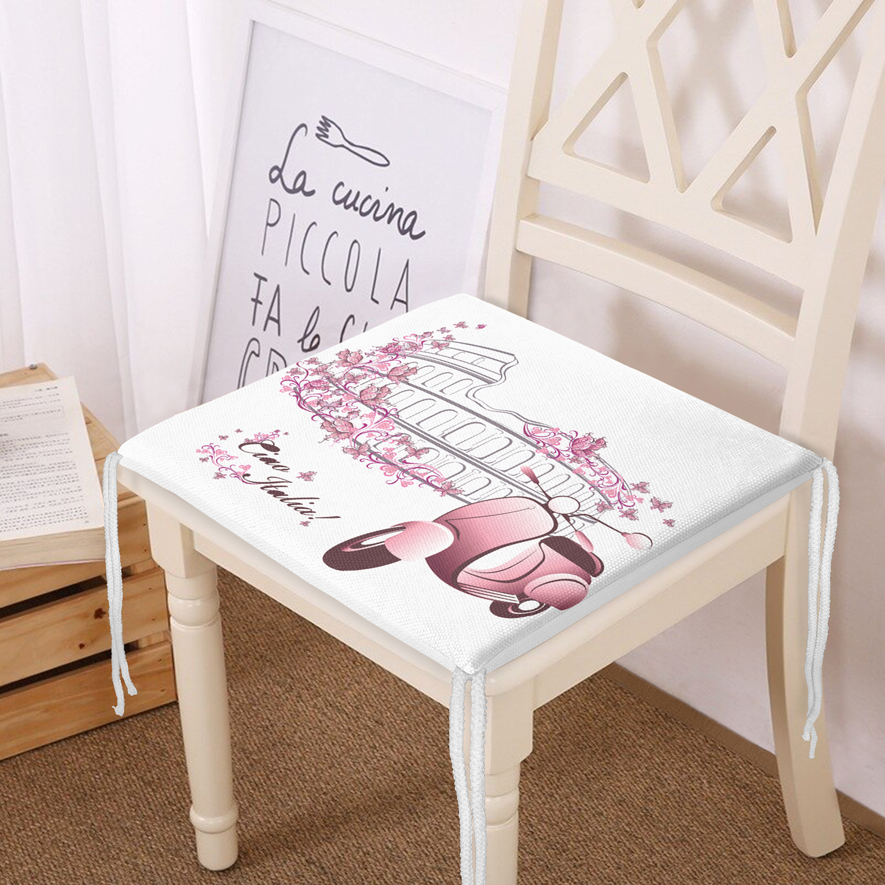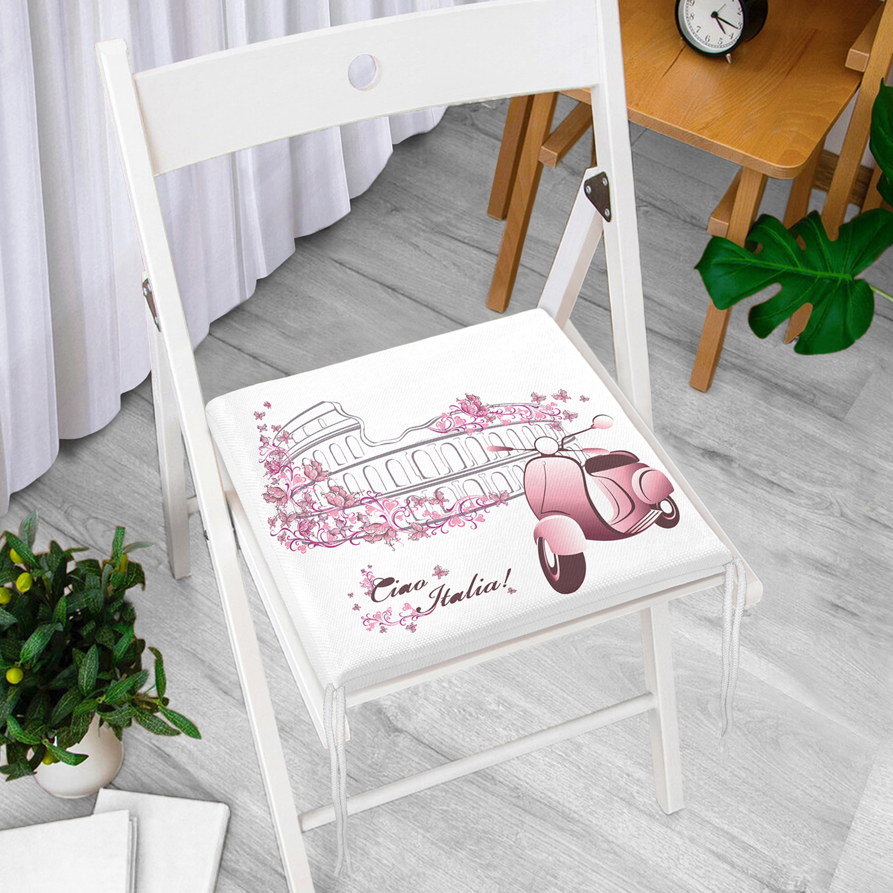 Modern İtalia Resimli Dekorati Kare Sandalye Minderi