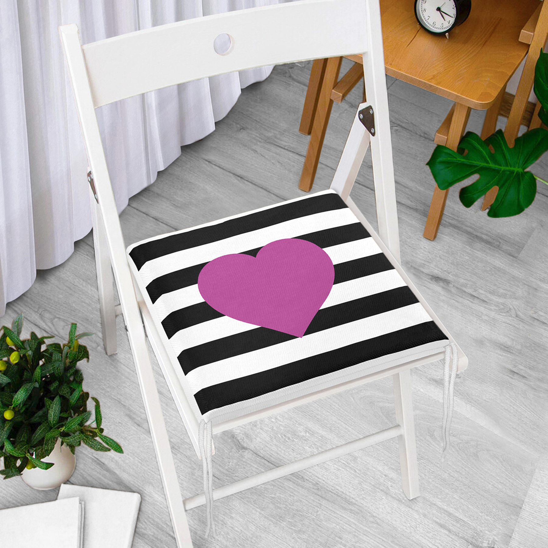 Modern Kalp Desen Dekorati Kare Sandalye Minderi
