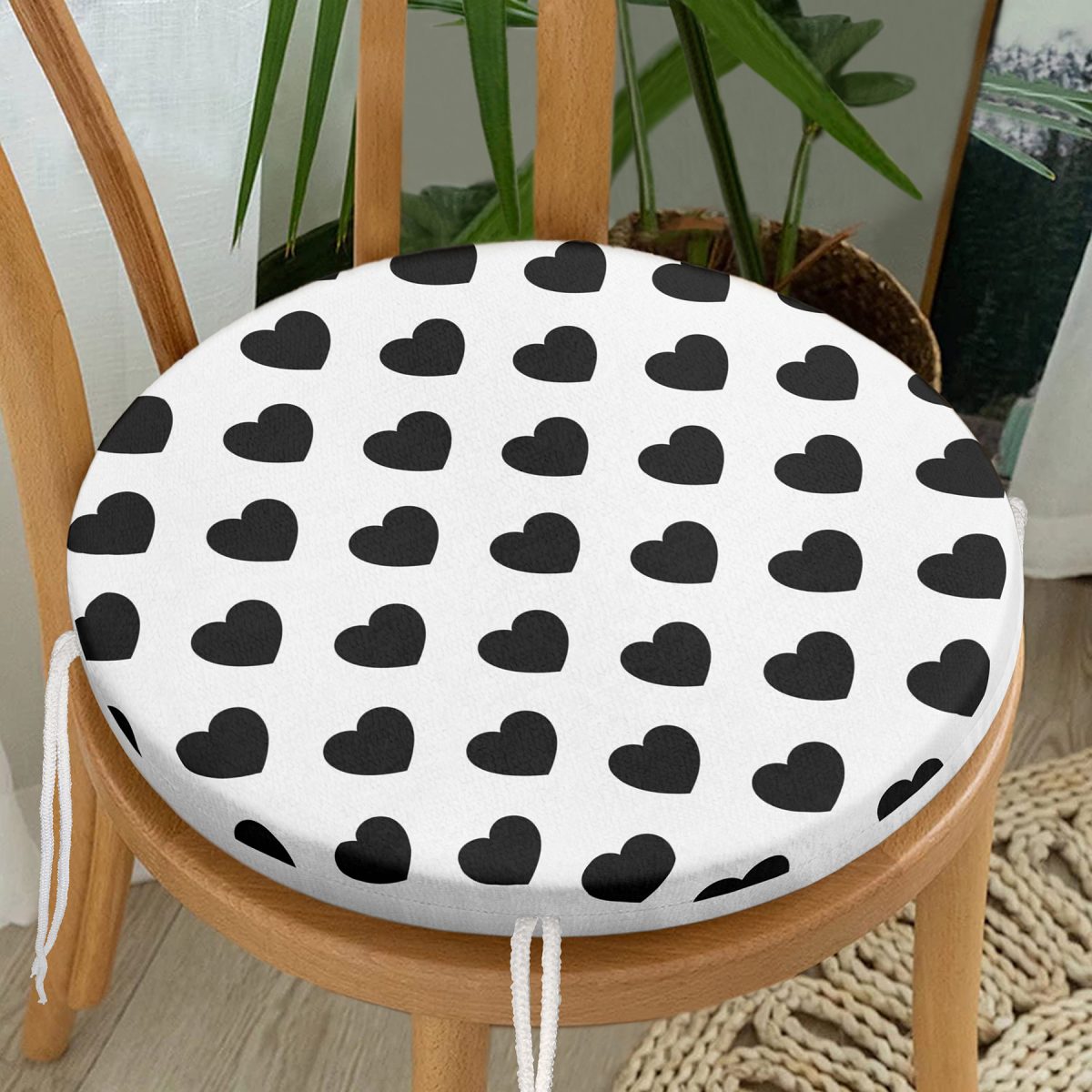 Modern Kalp Desenli Dijital Baskılı Yuvarlak Fermuarlı Sandalye Minderi
