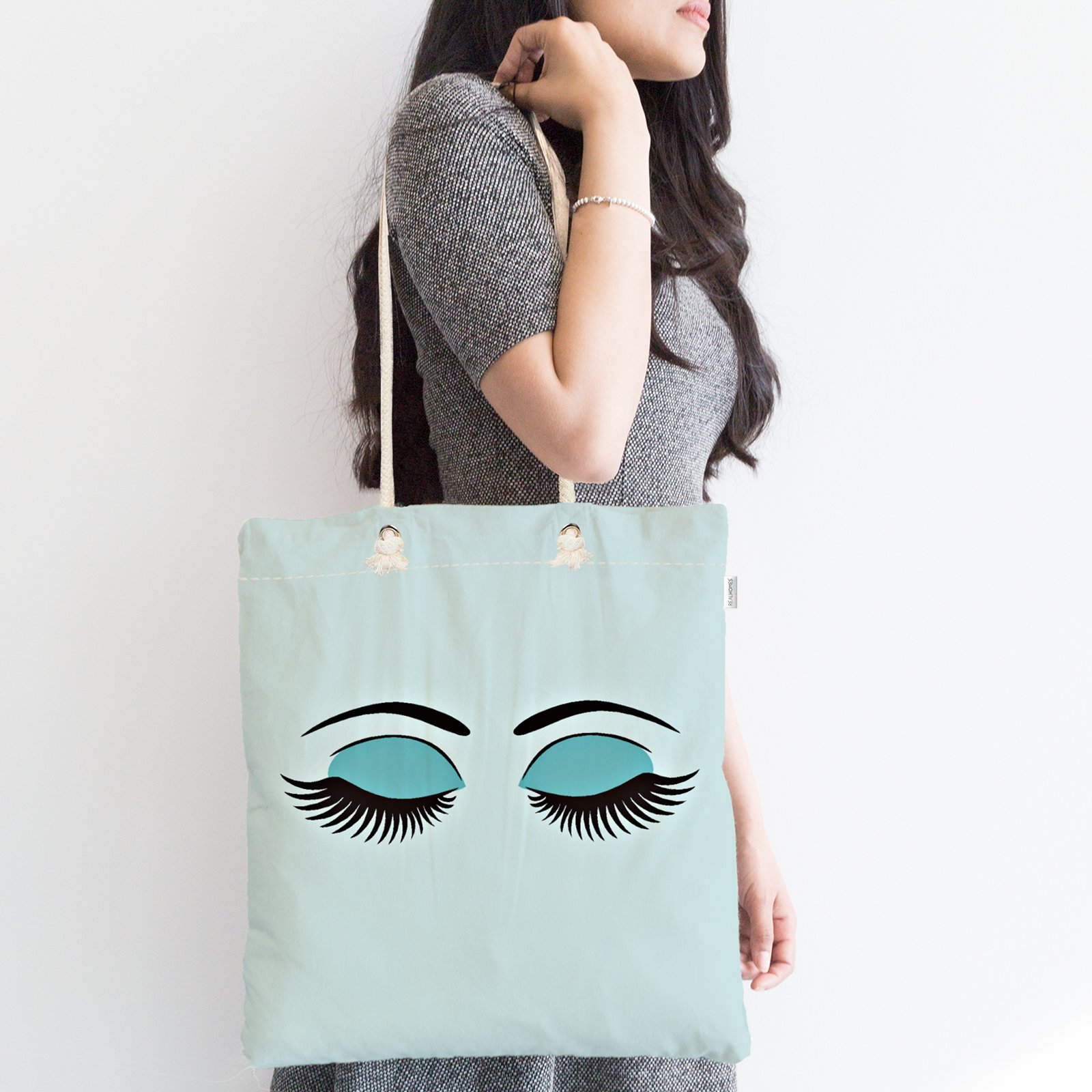 Modern Kirpik Dijital Baskılı Fermuarlı Modern Kumaş Çanta