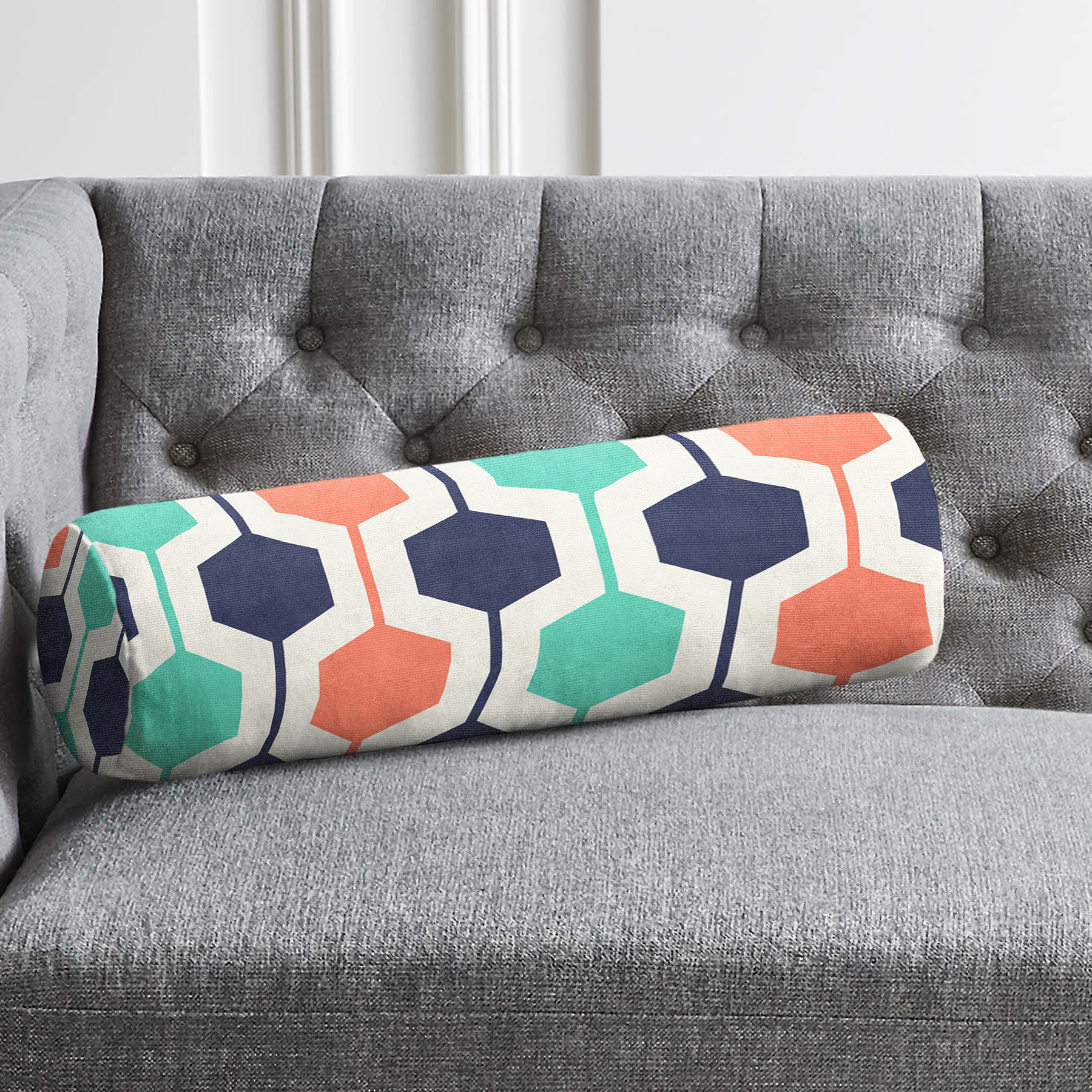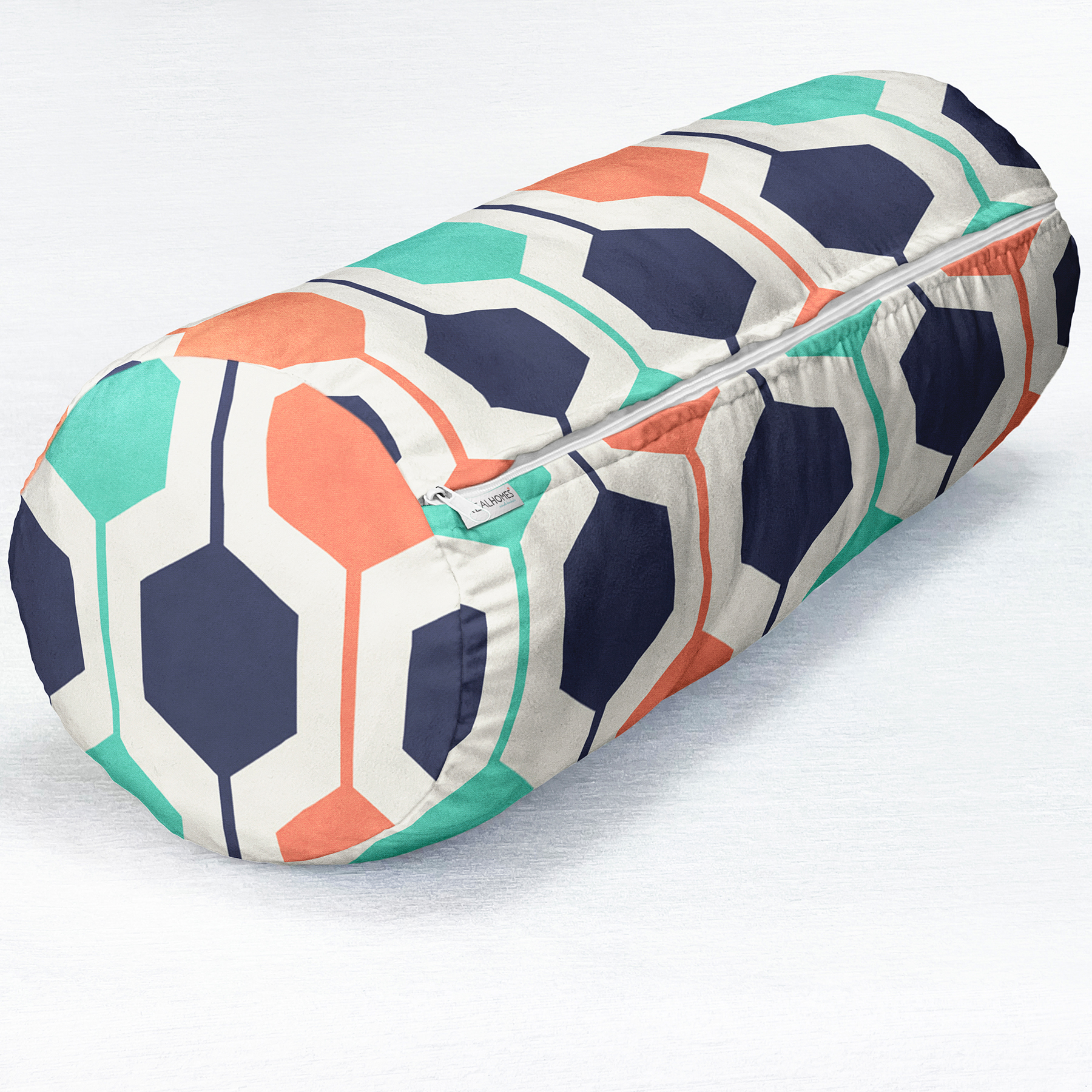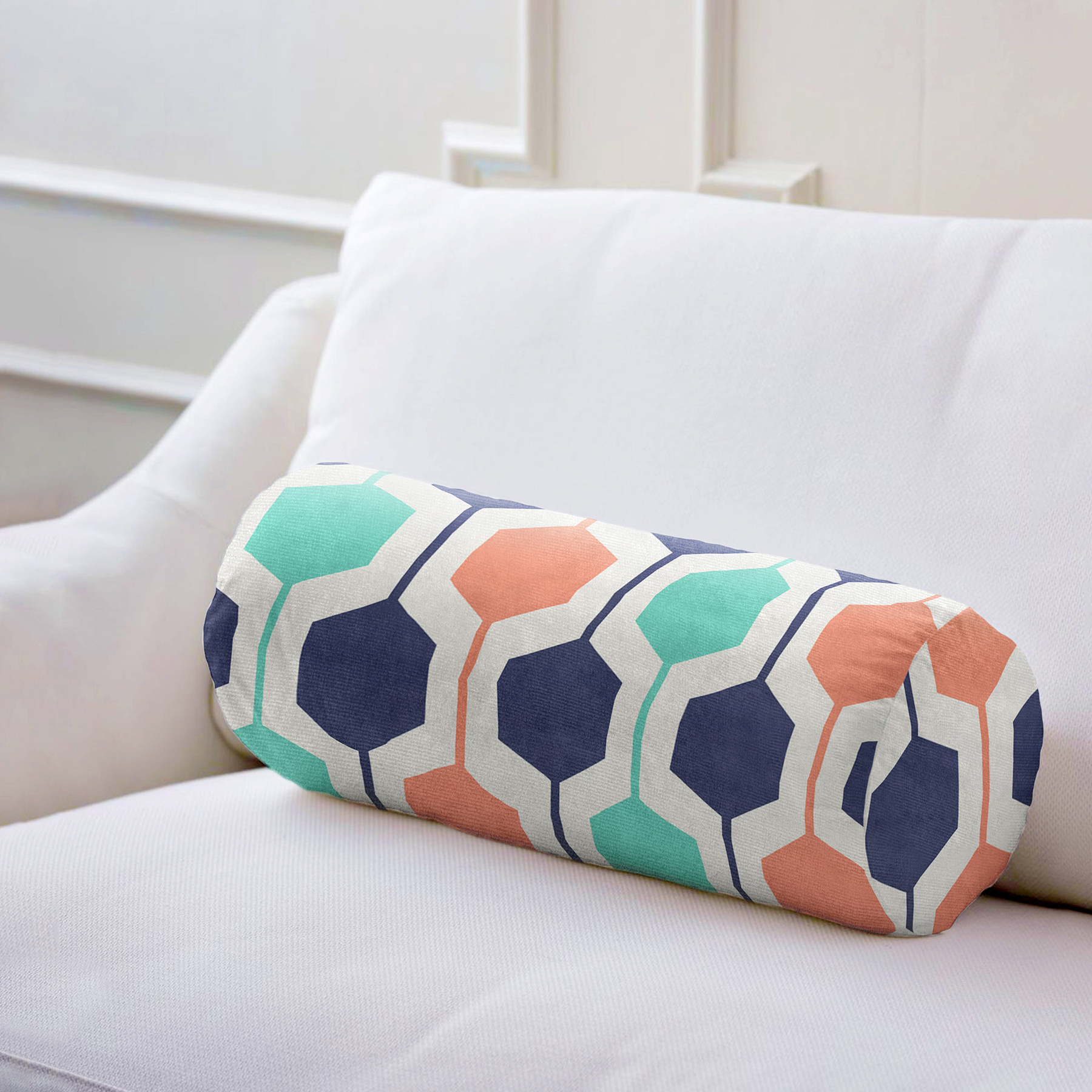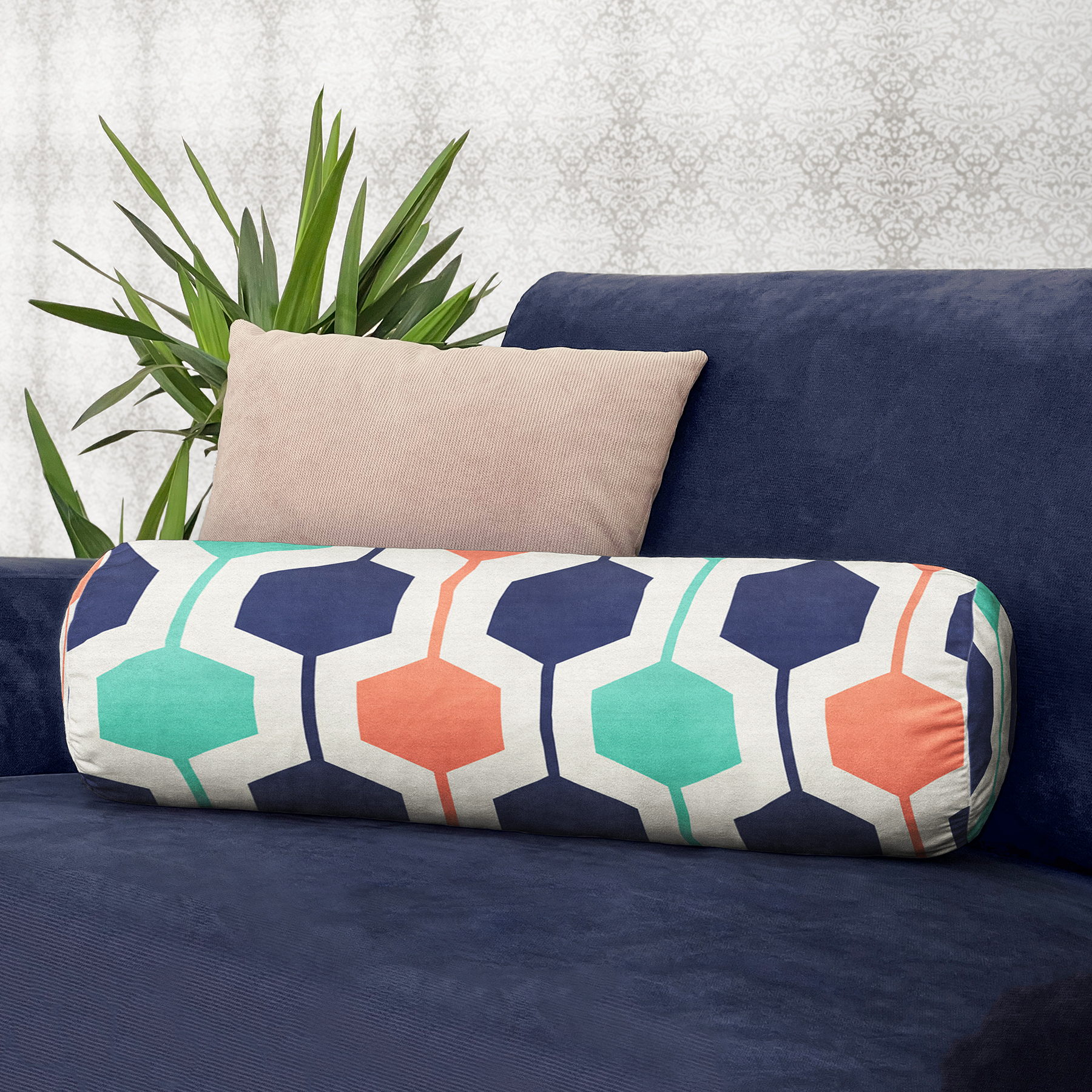 Modern Petek Desenli Dijital Baskılı Dekoratif İç Dolgulu – Fermuarlı Süet Silindir Daire Yastık Kırlent