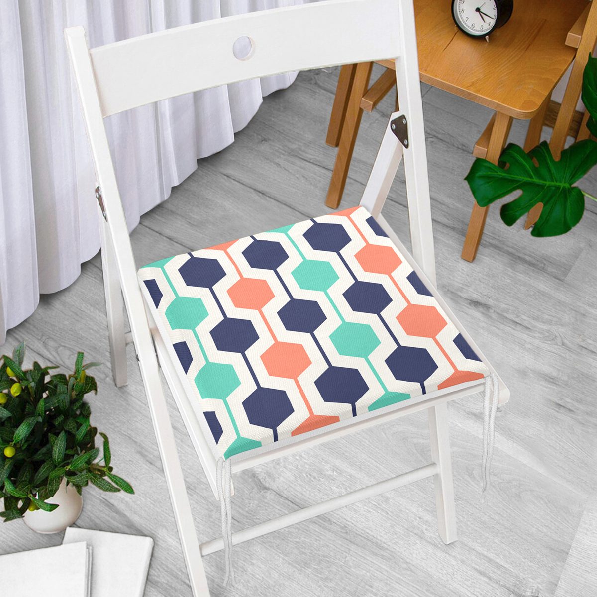 Modern Petek Desenli Dijital Baskılı Fermuarlı Sandalye Minderi