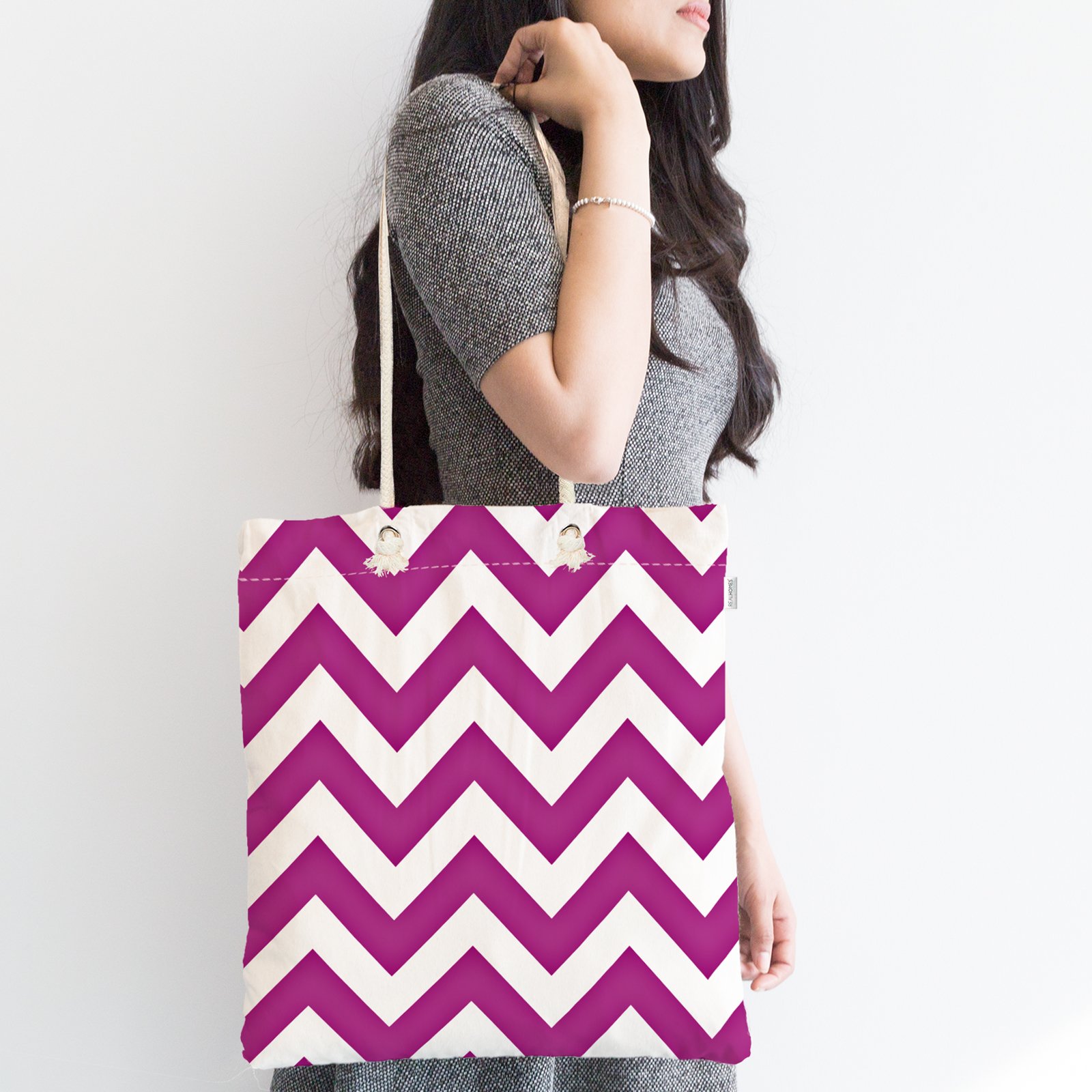 Modern Zigzag Desenli Dijital Baskılı Fermuarlı Modern Kumaş Çanta Realhomes