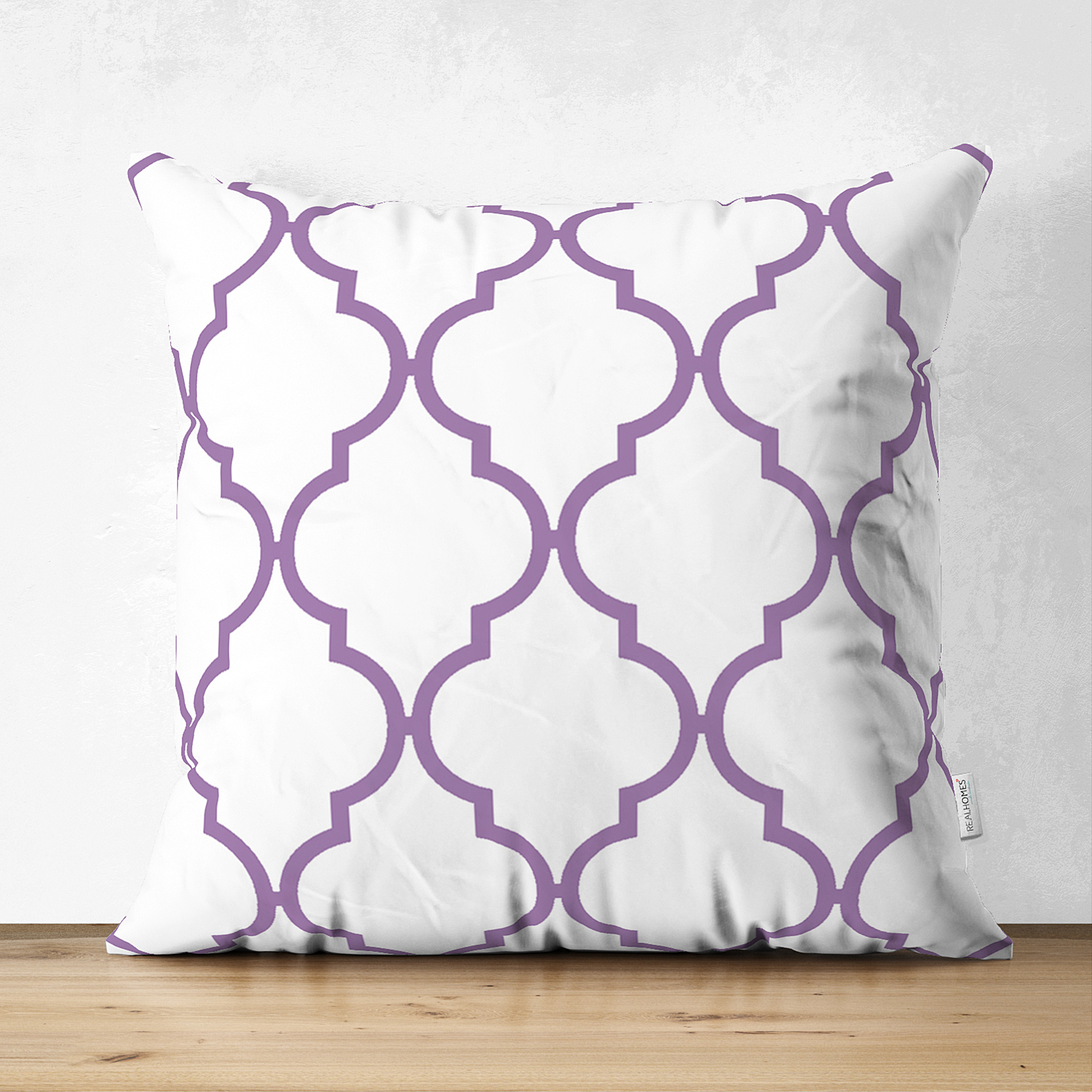 Mor Renkli Ogea Desenli Çift Taraflı Dijital Baskılı Modern Süet Kırlent Kılıfı Realhomes